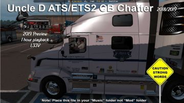 You drivers have asked me for new and longer pre recorded files from good ole “Uncle D” and your requests have been noted and answered, sorry for the wait, took months and months to build up a decent database for us but today I’m proud to announce 2019 is looking real real nice for us drivers with plenty of new files starting with this 1 hour 2019 preview, Get ready for 2019 because I got plenty new material for 2019 being mixed down as we speak! As always with my CB chatter mods, WARNING ADULT LANGUAGE!!! these files are not intended for younger SCS drivers or sensitive listeners. This mod is simply a studio edited MP3 file you will place in your SCS “MUSIC” folder not “MOD” folder and play with your in cab radio playlist ok. Other than that enjoy drivers and keep on trucking and keep on talking @#$@ on dem radios!