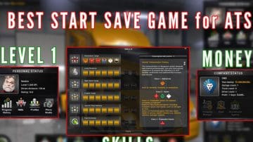– Level 1 [All skill points are maxed] – 1,000,000,000€ Cash [To buy all the trucks you want] – Tested with ATS last version [should work for all versions]