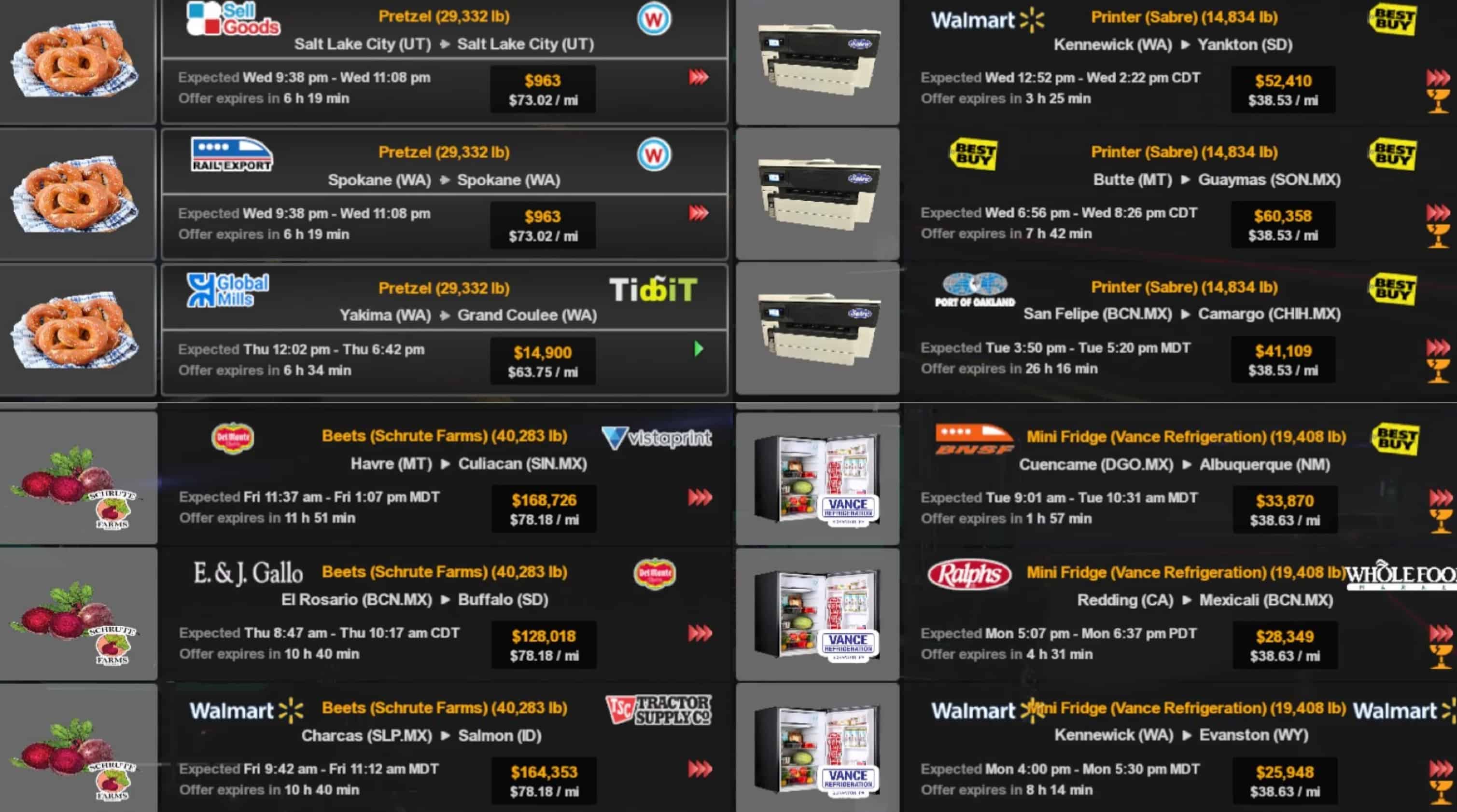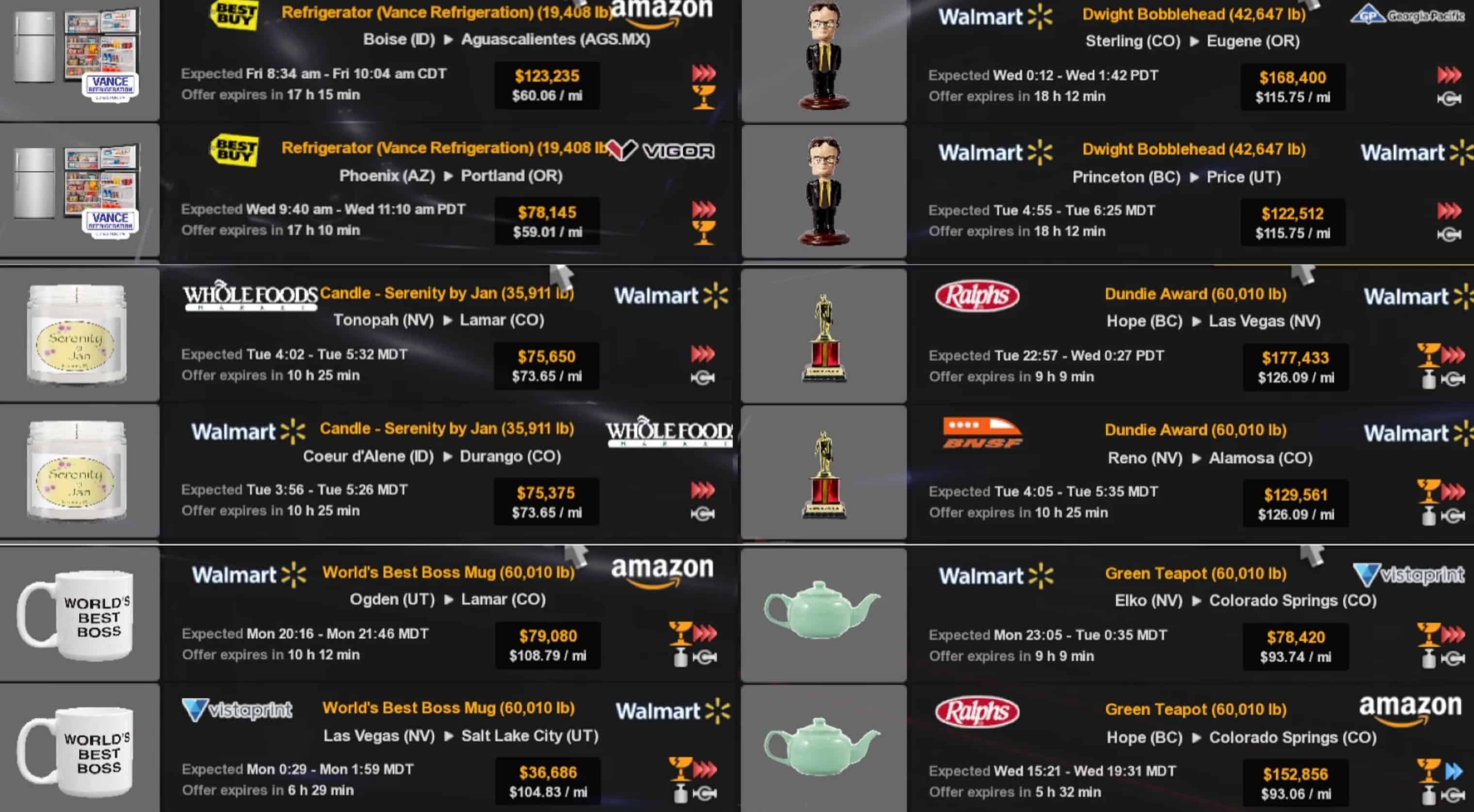 * AI trailer lengths have been adjusted to 45ft and transformed into Dry Van. In addition, 3 of them could also be seen as reefers.