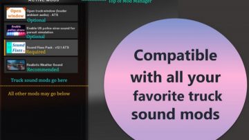 This mod replaces default sounds to be more immersive and realistic. Takes the simulation to a whole new level. This makes for a good combination with other truck sound mods.