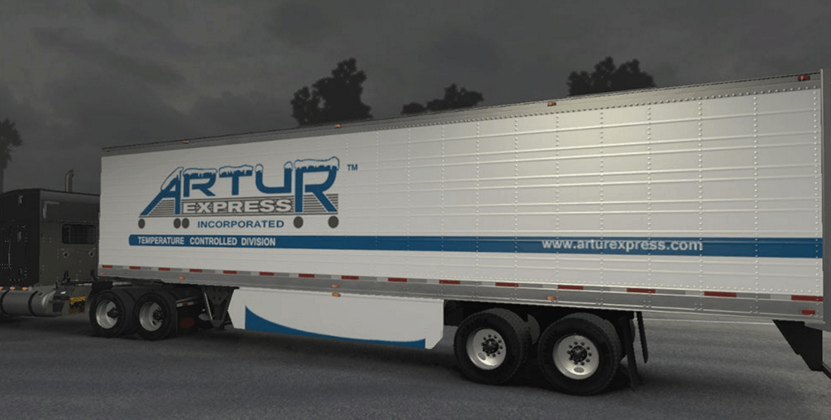 If you enjoy experiencing real American Truck driver life, but at the same time feel a bit bored of the common road, cargos, and trucks, then American Truck Simulator Mods are for you! Step into an American Truck Simulator Driver's shoes and prove that you can deliver the cargo under any circumstance. It is the easiest way to get the best of the game, your opponents will be surprised! Then all you need to do is simply click on American Truck Simulator Artur Express trailer Skin Mod free download button and implement it to your game.