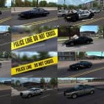 The mod removes the original police cars from the states made by SCS and replaces them with the cars in this mod, however the SCS Taurus with the open door can appear in the random event accident.