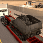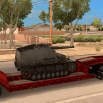 This is a standalone lowboy trailer mod that has a Hummel mobile artillery as cargo.