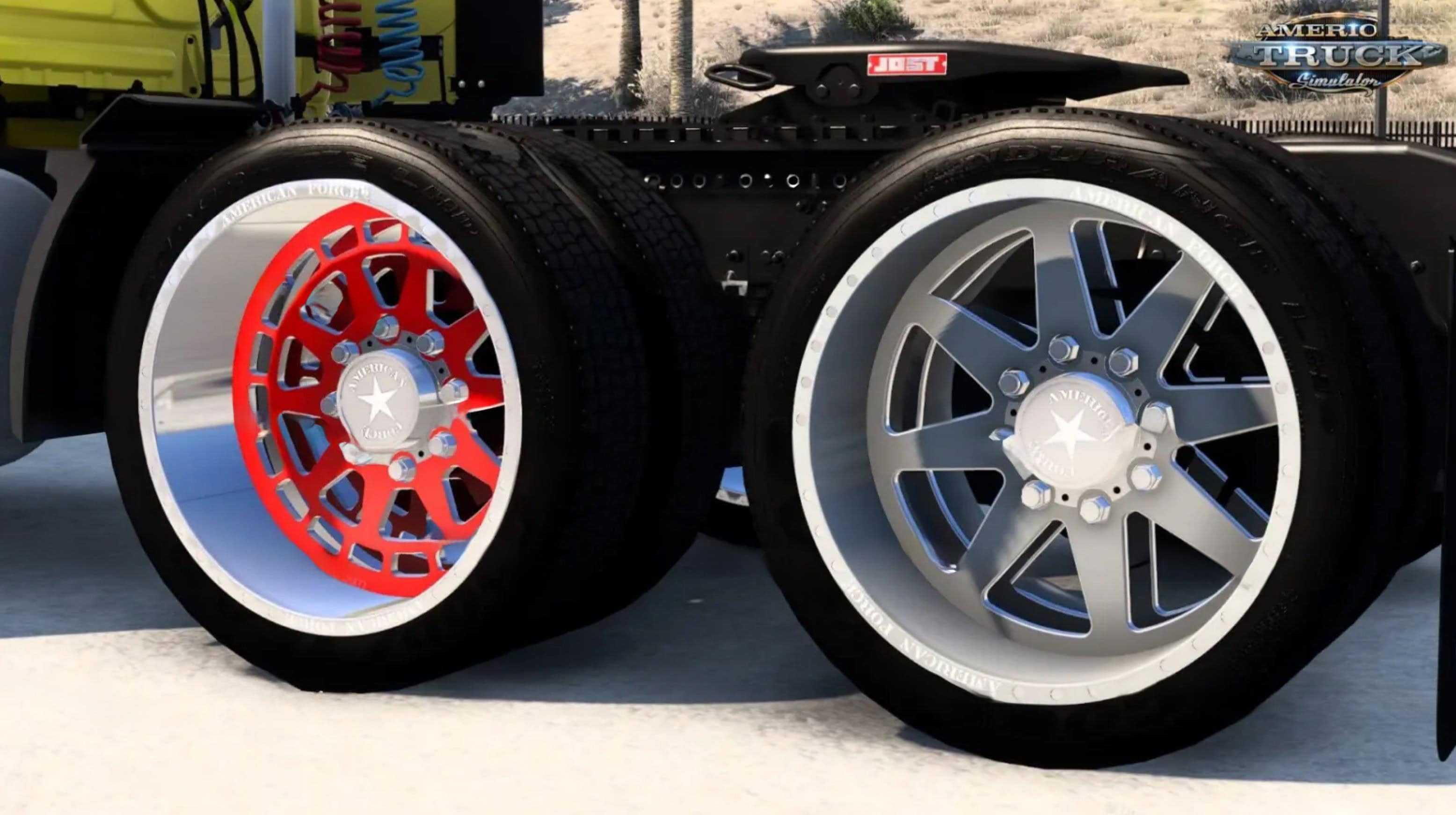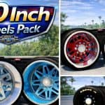 30 Inch Wheels Pack by ratr0 for ATS โ€“ this mod brings the massive 30 inch rim and tire pack by ratr0 (Retro Development) to ATS players as a standalone premium tuning accessory collection, perfect for transforming show trucks into towering spectacles across American heavy-haul routes with oversized polished aluminum rims, aggressive low-profile tires, and wet weather variants for unparalleled stance, shine, and grip that dominate highways from dusty Southwest flats to rainy Pacific Northwest runs.