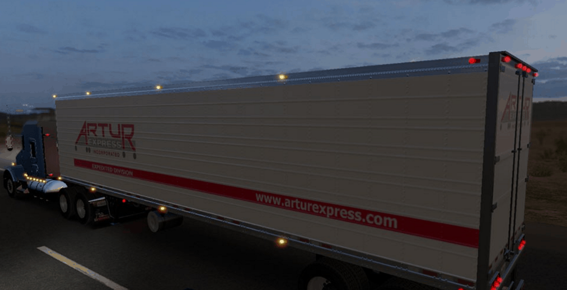 If you enjoy experiencing real American Truck driver life, but at the same time feel a bit bored of the common road, cargos, and trucks, then American Truck Simulator Mods are for you! Step into an American Truck Simulator Driver's shoes and prove that you can deliver the cargo under any circumstance. It is the easiest way to get the best of the game, your opponents will be surprised! Then all you need to do is simply click on American Truck Simulator Artur Express trailer Skin Mod free download button and implement it to your game.