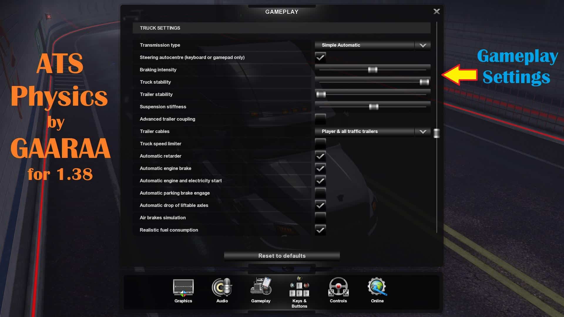 ATS Realistic Physics by GAARAA KB 1.38 scs mod (Keyboard)