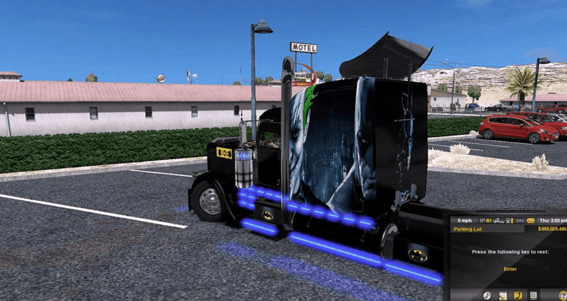 If you enjoy experiencing real American Truck driver life, but at the same time feel a bit bored of the common road, cargos, and trucks, then American Truck Simulator Mods are for you! Step into an American Truck Simulator Driver's shoes and prove that you can deliver the cargo under any circumstance. It is the easiest way to get the best of the game, your opponents will be surprised! Then all you need to do is simply click on American Truck Simulator Batman 389 Skin Mod free download button and implement it to your game.