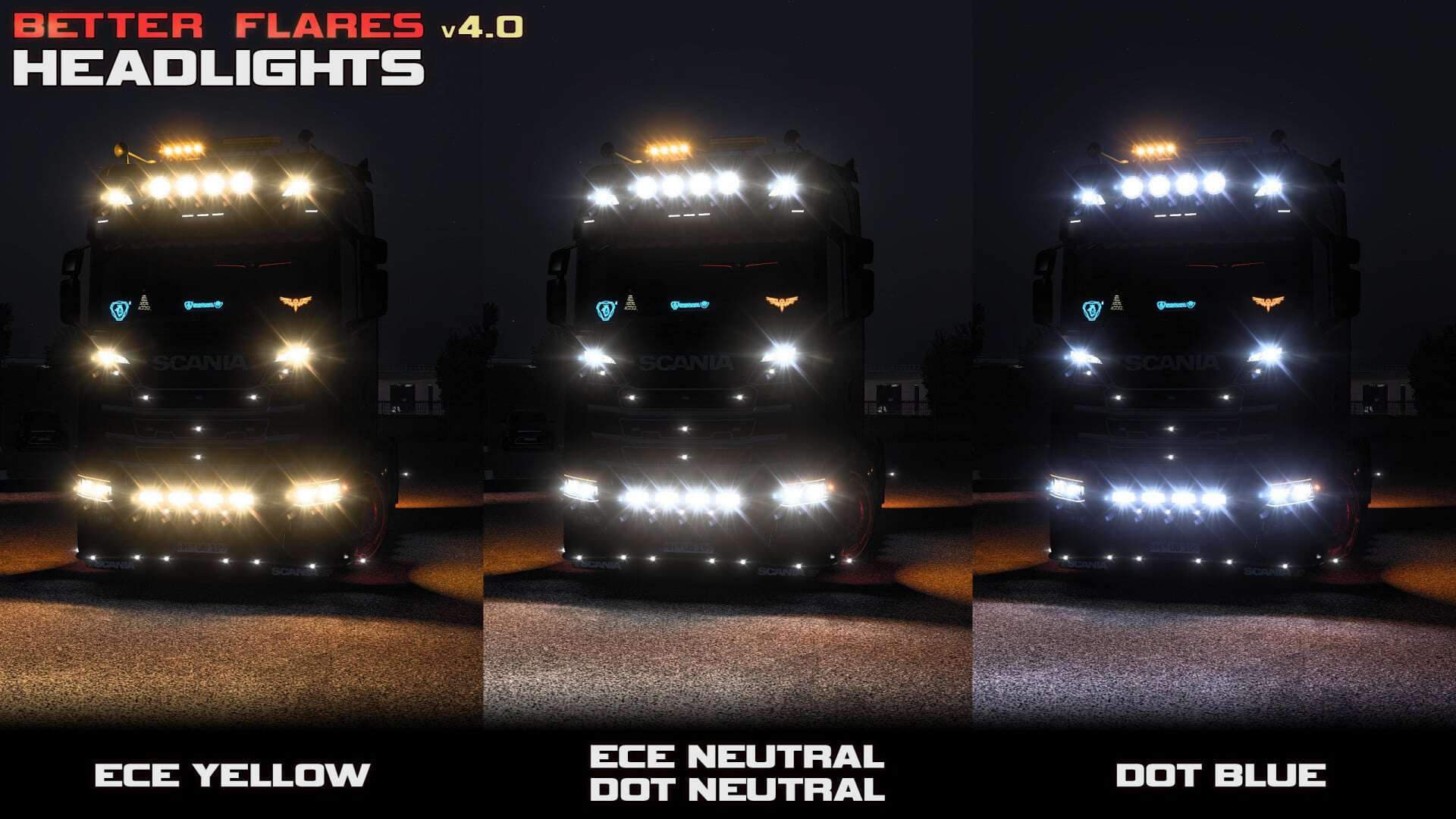 – Added new headlights options: DOT Warm, ECE Cyan, ECE Neutral 1 (similar to DOT Neutral), previous ECE Neutral renamed to ECE Neutral 2