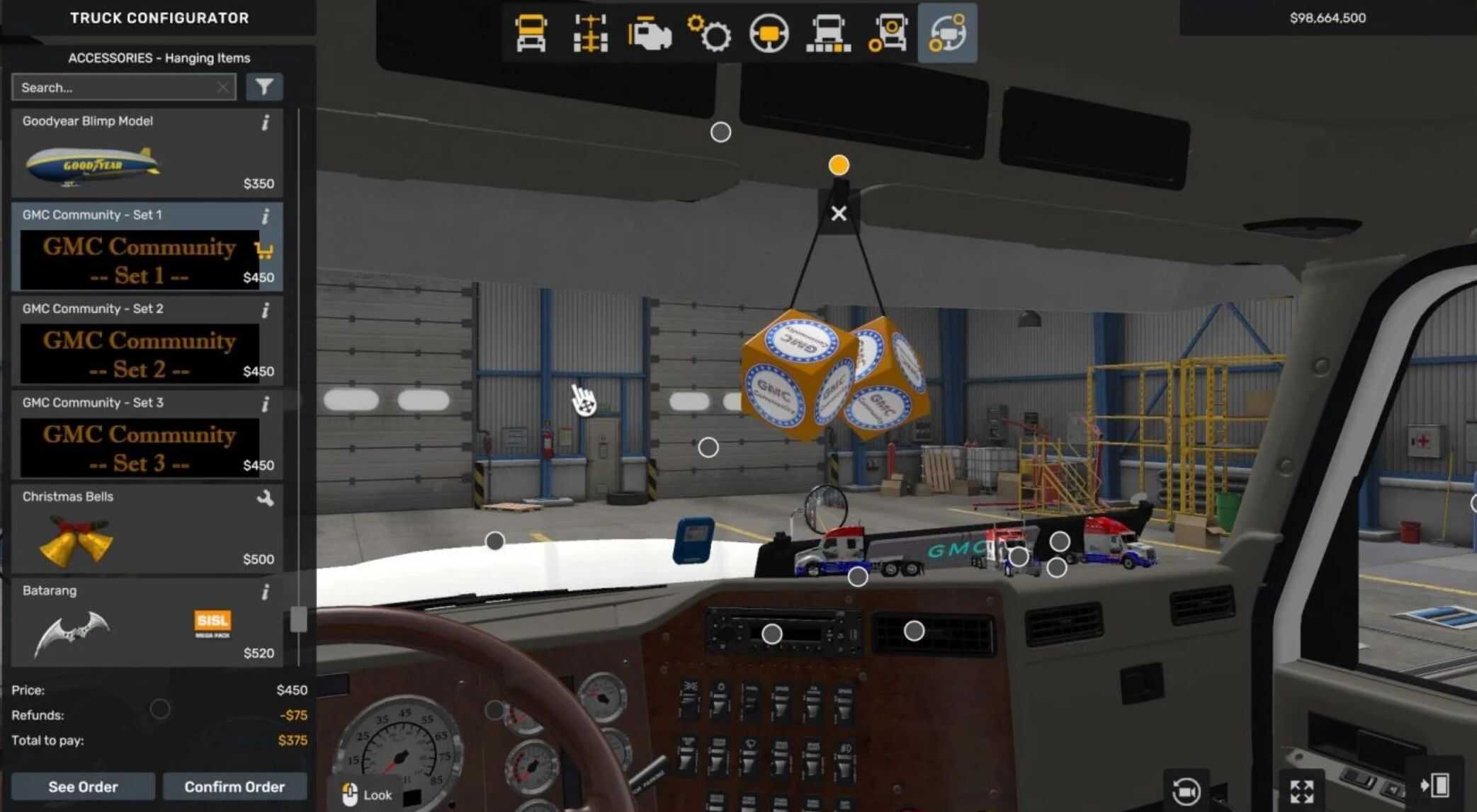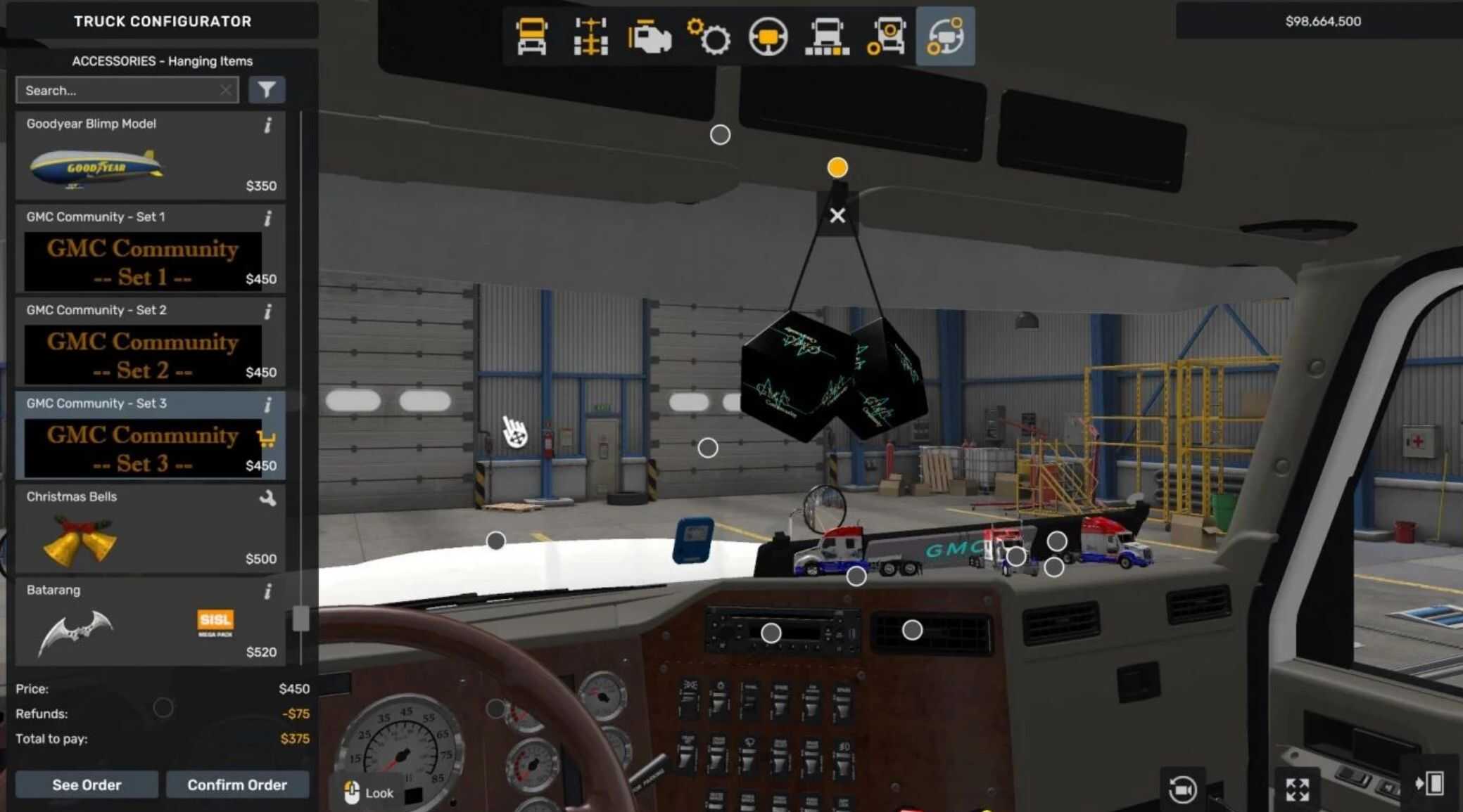 This mod adds on the hanging items inside the cabin GMC Community Dices.