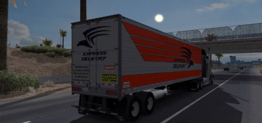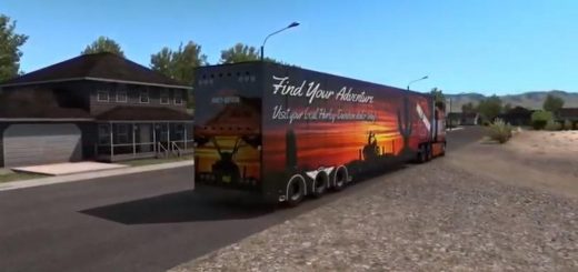 It requires Heavy Cargo Pack DLC because it uses some resources from that pack (jeep, spreader and some textures). The trailer provided with this mod is a modified 3 axle “Lowboy 55L” (aka Magnitude 55L) with added spreader attachment. Note: this load is very wide, wider than any currently available cargo in ATS – that might cause some issues.