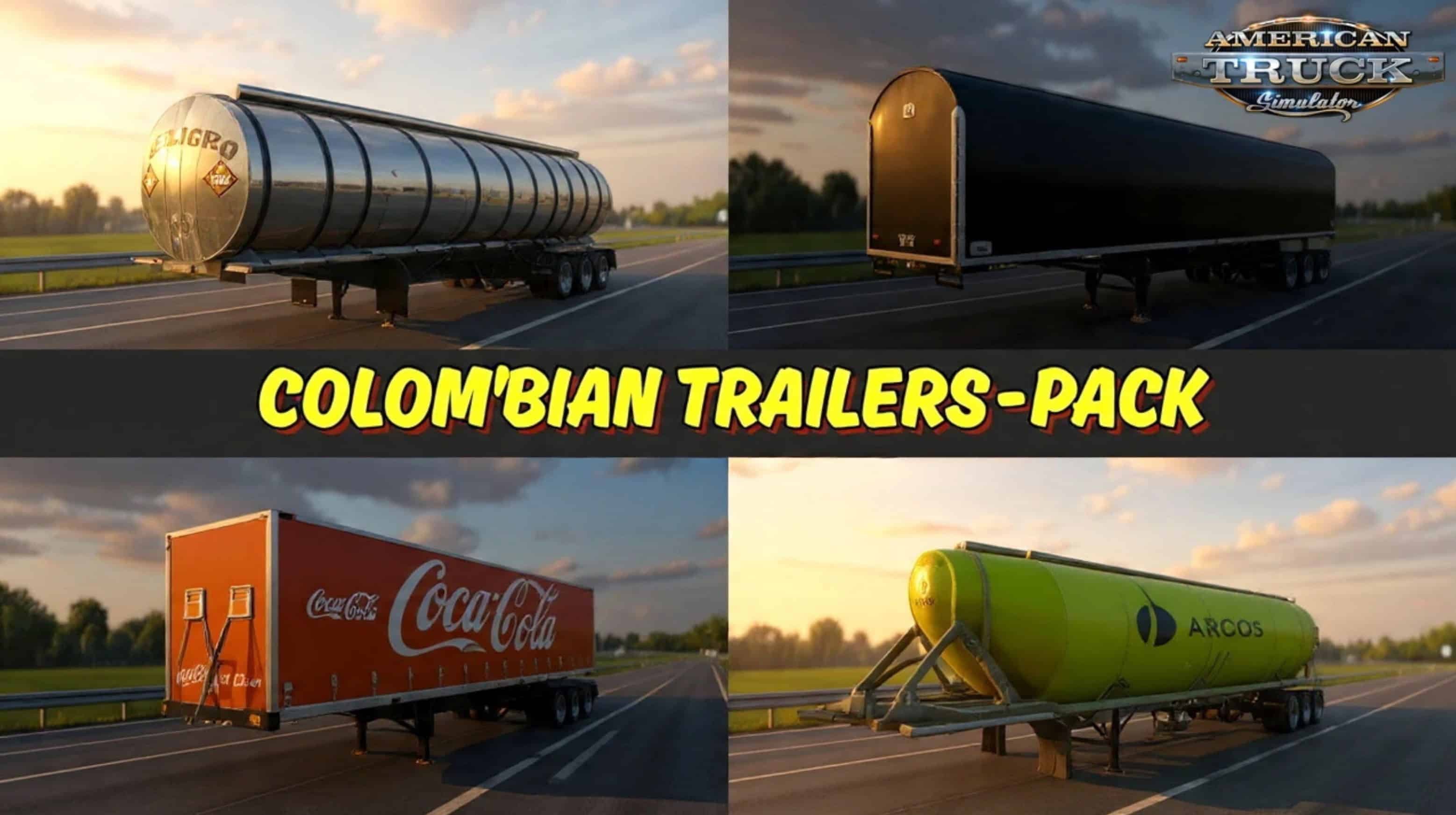 Colombian Trailers Pack for ATS – this mod brings a colorful and authentic collection of Colombian‑themed trailers to American Truck Simulator, offering a premium standalone set of freight options inspired by real South American logistics companies. With detailed 3D models, high‑quality skins, working lights, and full cable support, this pack delivers a lively and immersive hauling experience across U.S. highways while showcasing iconic Colombian brands. Perfect for players who enjoy regional realism, company‑themed fleets, and unique trailer designs.