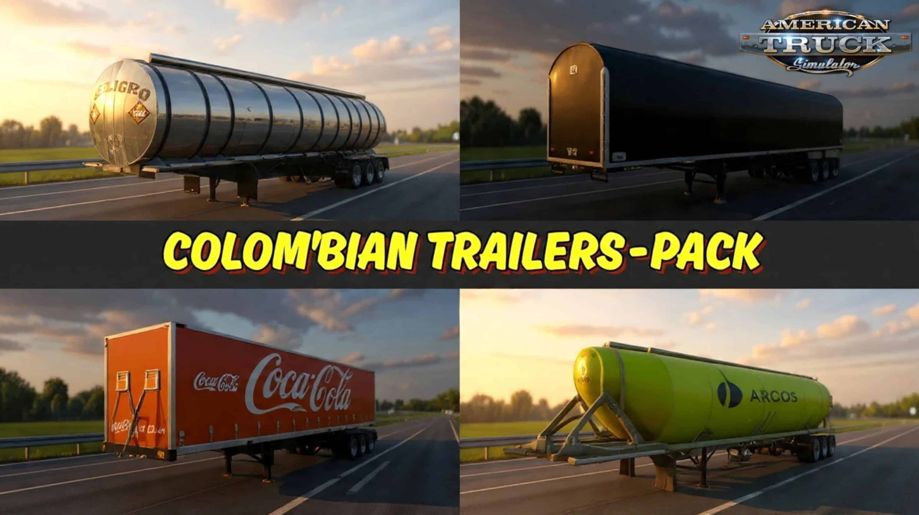 Colombian Trailers Pack for ATS – this mod brings a colorful and authentic collection of Colombian‑themed trailers to American Truck Simulator, offering a premium standalone set of freight options inspired by real South American logistics companies. With detailed 3D models, high‑quality skins, working lights, and full cable support, this pack delivers a lively and immersive hauling experience across U.S. highways while showcasing iconic Colombian brands. Perfect for players who enjoy regional realism, company‑themed fleets, and unique trailer designs.