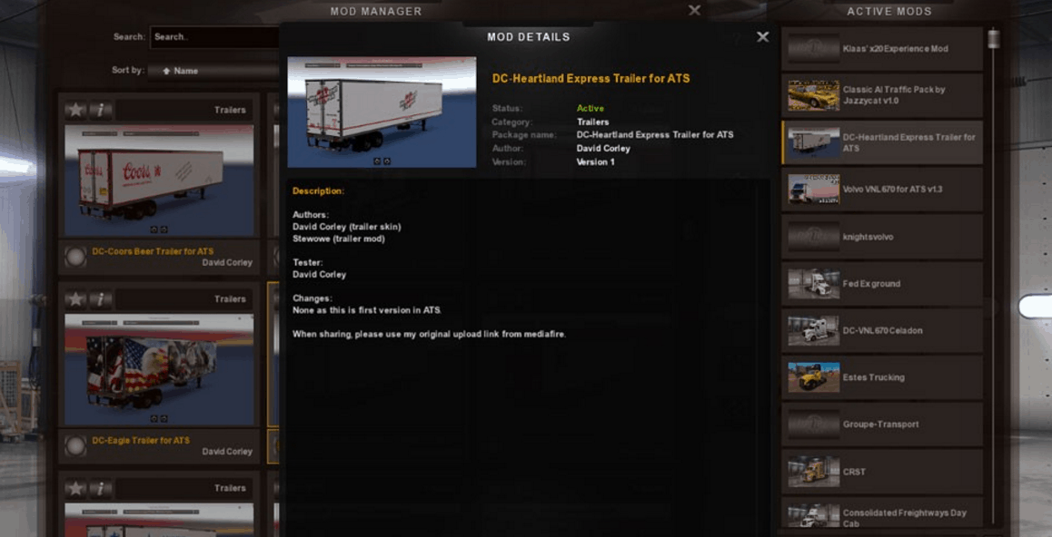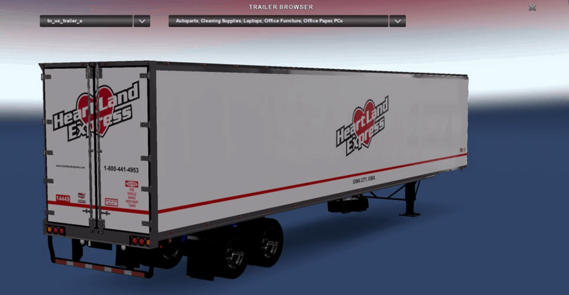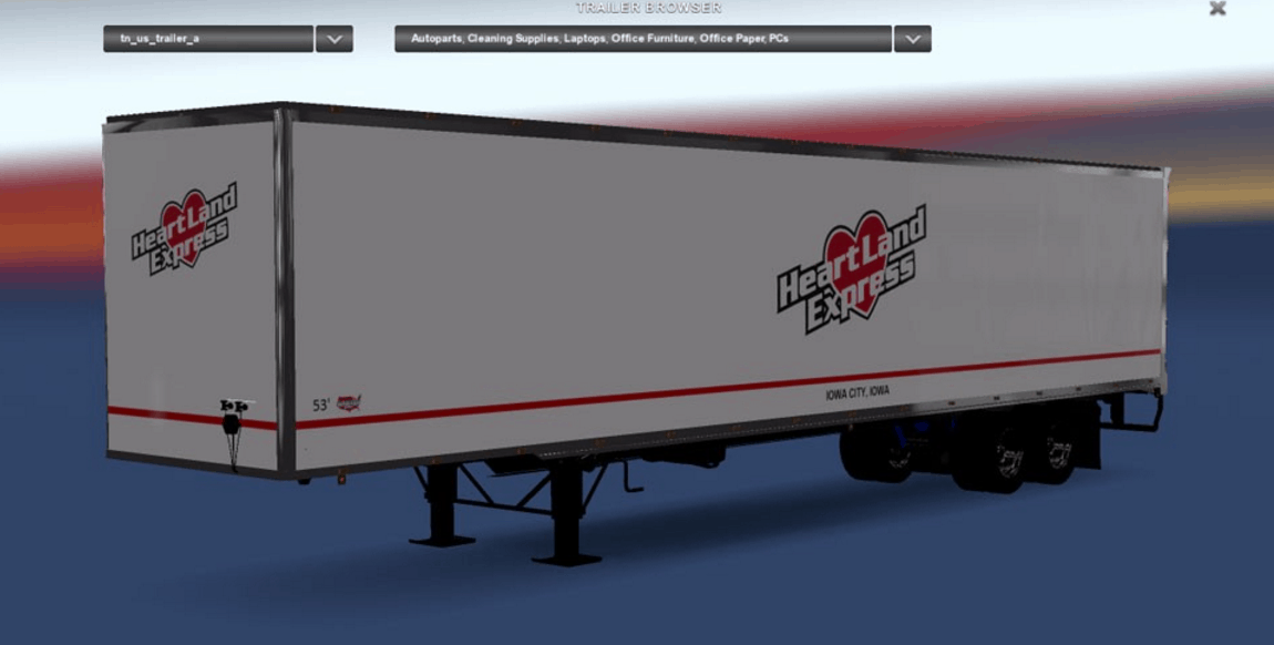 Hey guys, this is my Heartland Express skin I created today on stewowe’s trailer. I have been wanting to re-skin my Heartland Express trailer for a LONG time now and finally did it! All this converting my ETS2 stuff over into ATS gave me the itch to finally make it. lol Remember to only use one of my skinned stewowe’s trailers in-game at a time. Thanks and I hope you enjoy it!