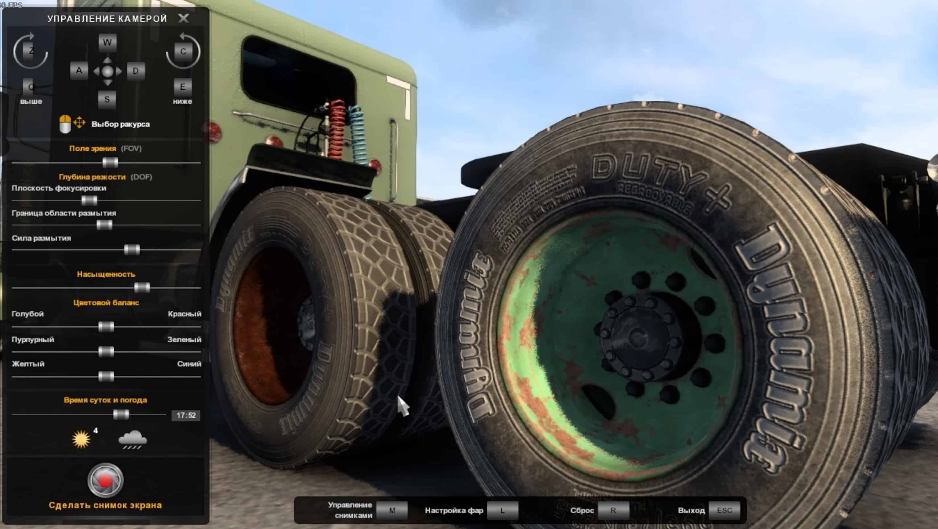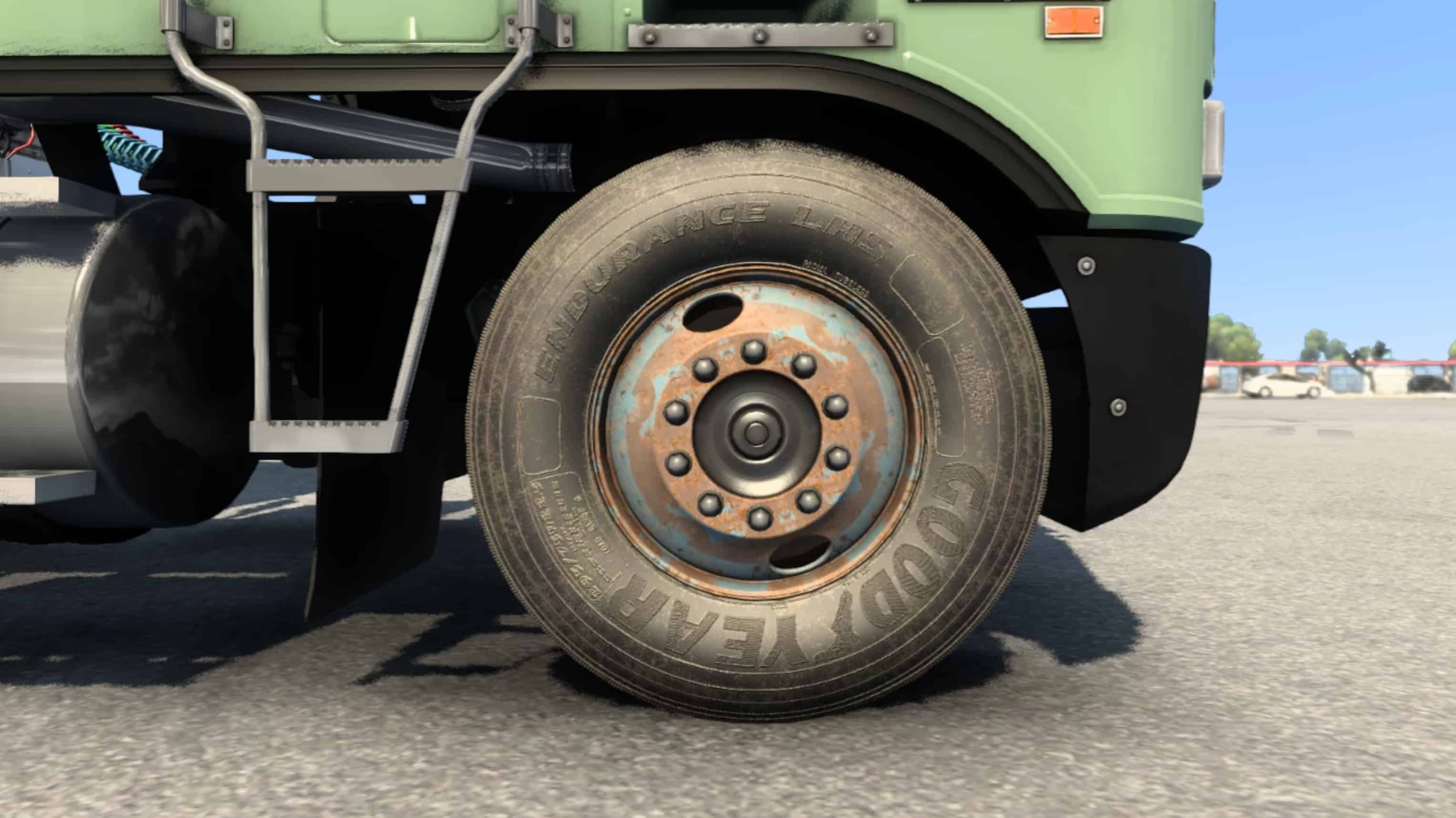 Edged mod kit of old dirty tires and steel rims for american truck simulator.