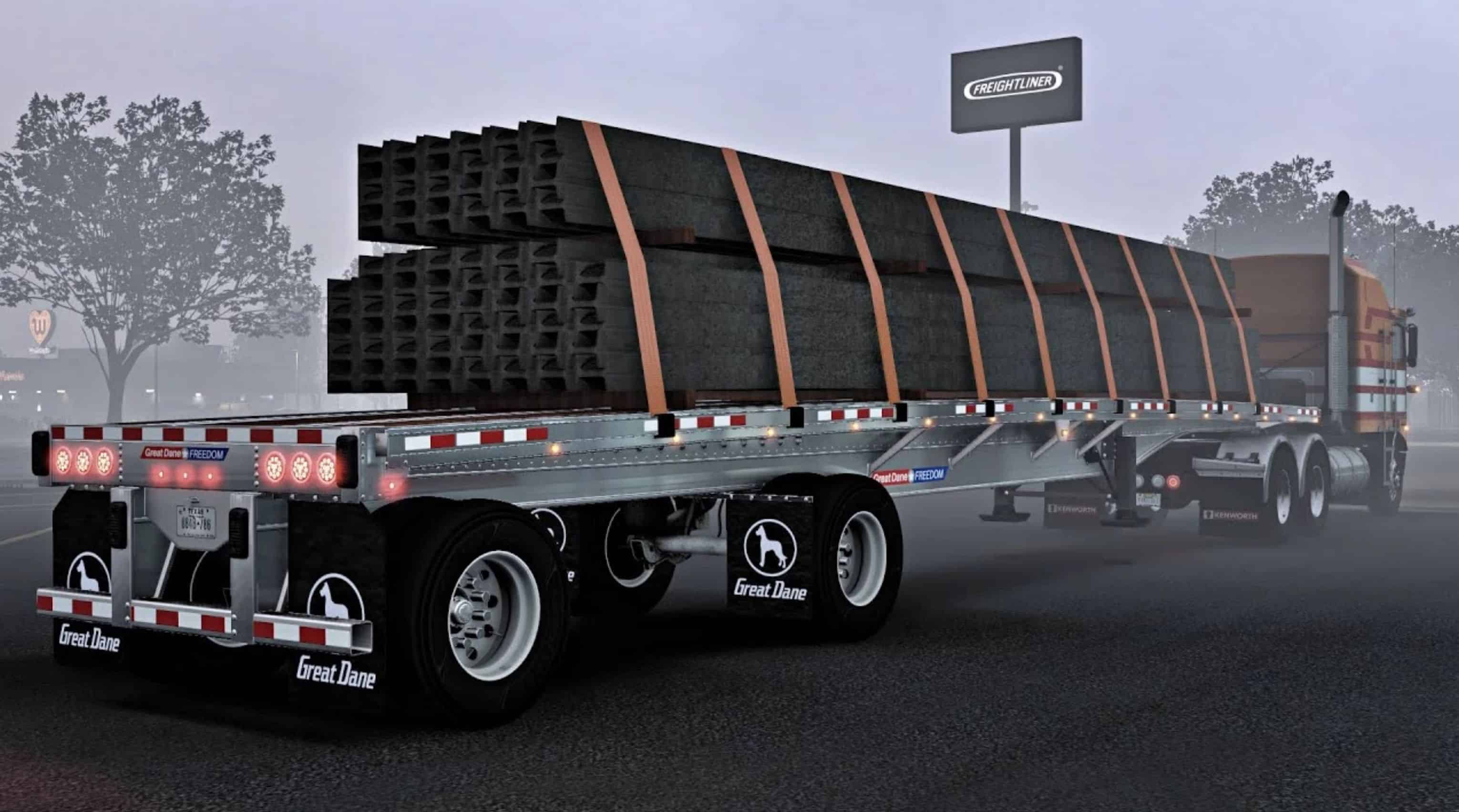 The Flatbed Great Dane Freedom LT mod for American Truck Simulator is the perfect addition to your trailer collection. This high quality mod lets you transport various types of cargo safely and in style. With its sleek, modern design, the Flatbed Great Dane Freedom LT is sure to turn heads on the road. Whether you’re hauling building materials or other types of cargo, this mod is the perfect choice for any job. Don’t settle for ordinary trailers – update your game with the Flatbed Great Dane Freedom LT mod for American Truck Simulator today!
