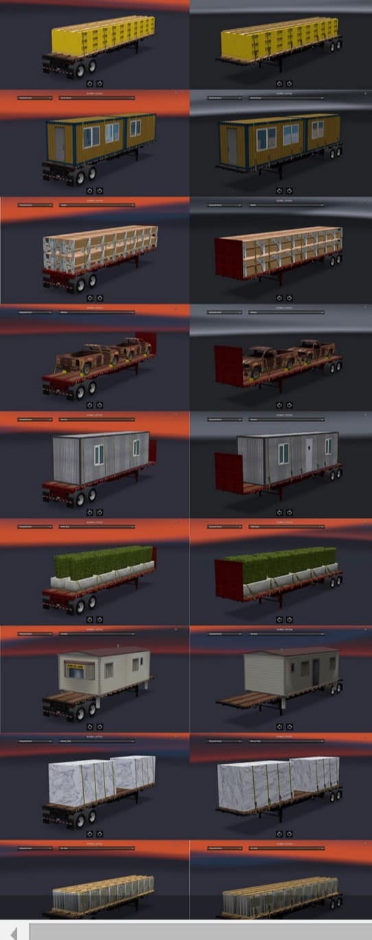 If you enjoy experiencing real American Truck driver life, but at the same time feel a bit bored of the common road, cargos, and trucks, then American Truck Simulator Mods are for you! Step into an American Truck Simulator Driver's shoes and prove that you can deliver the cargo under any circumstance. It is the easiest way to get the best of the game, your opponents will be surprised! Then all you need to do is simply click on American Truck Simulator Flatbed Trailer Cargo Pack v 1.0 for ATS Mod free download button and implement it to your game.