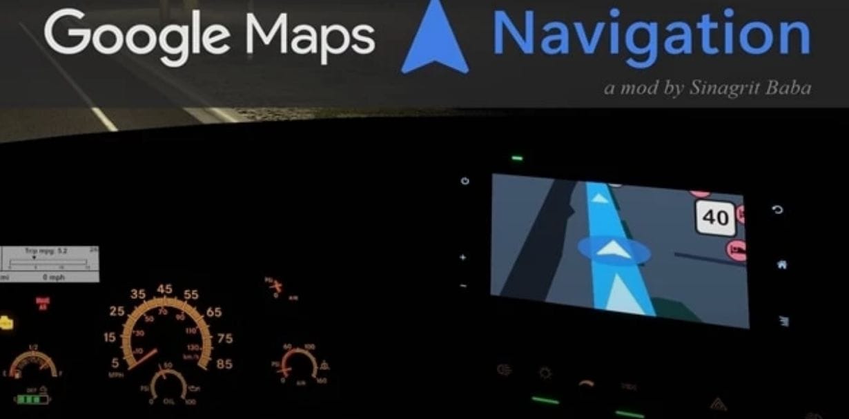 This mod simulates your in-vehicle navigation screen to Google Maps Navigation Night Version.