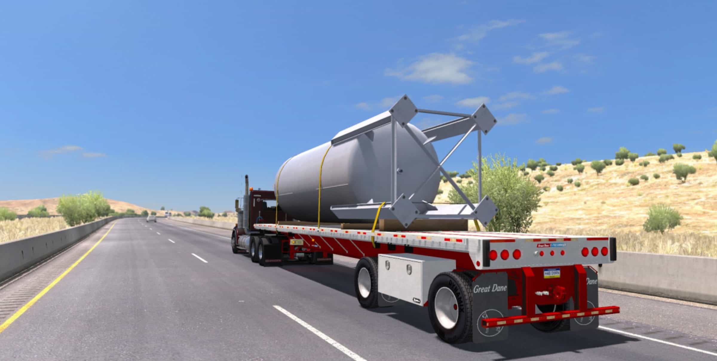 If you enjoy experiencing real American Truck driver life, but at the same time feel a bit bored of the common road, cargos, and trucks, then American Truck Simulator Mods are for you! Step into an American Truck Simulator Driver's shoes and prove that you can deliver the cargo under any circumstance. It is the easiest way to get the best of the game, your opponents will be surprised! Then all you need to do is simply click on American Truck Simulator Great Dane Flatbed v 5.0 Mod free download button and implement it to your game.