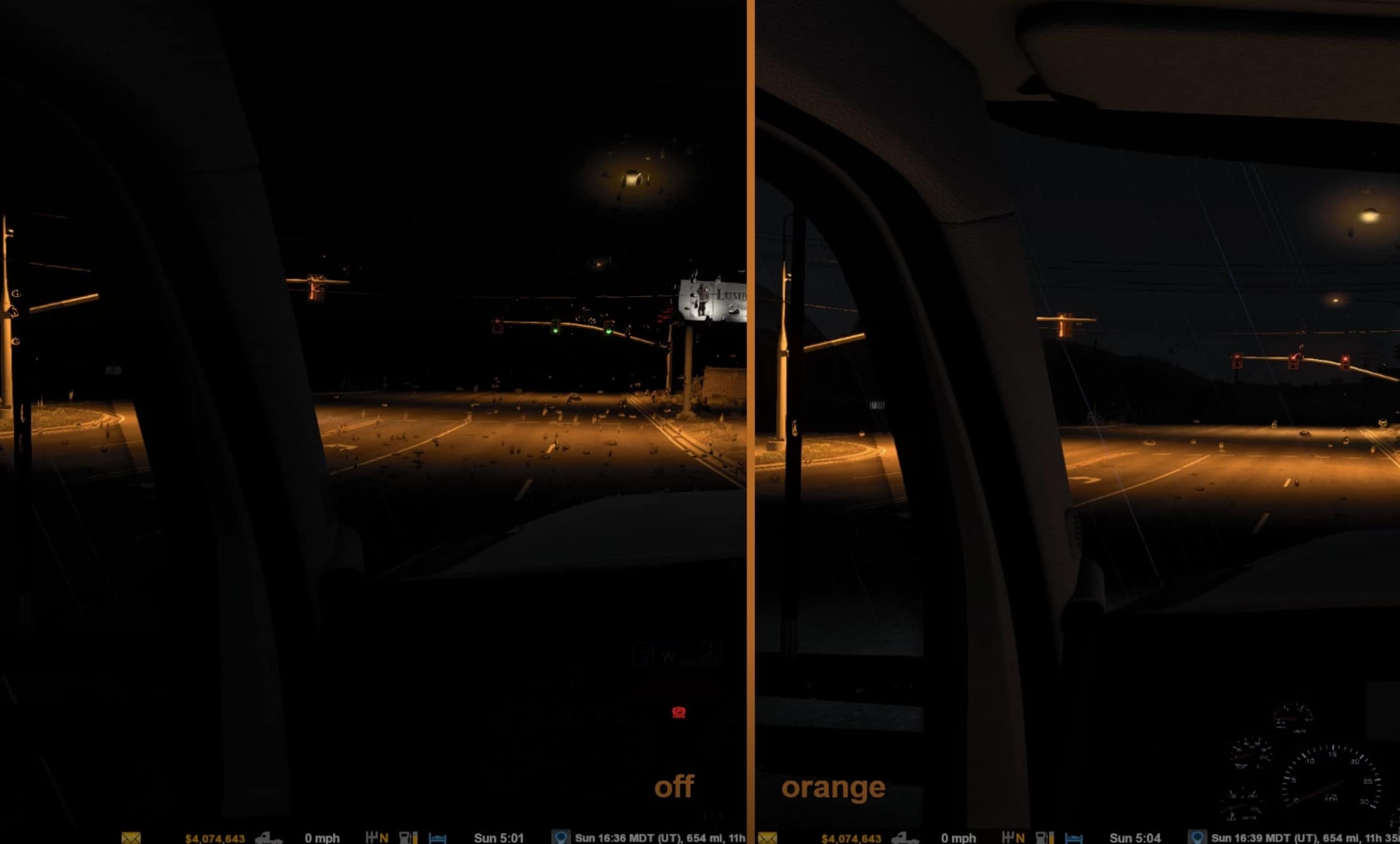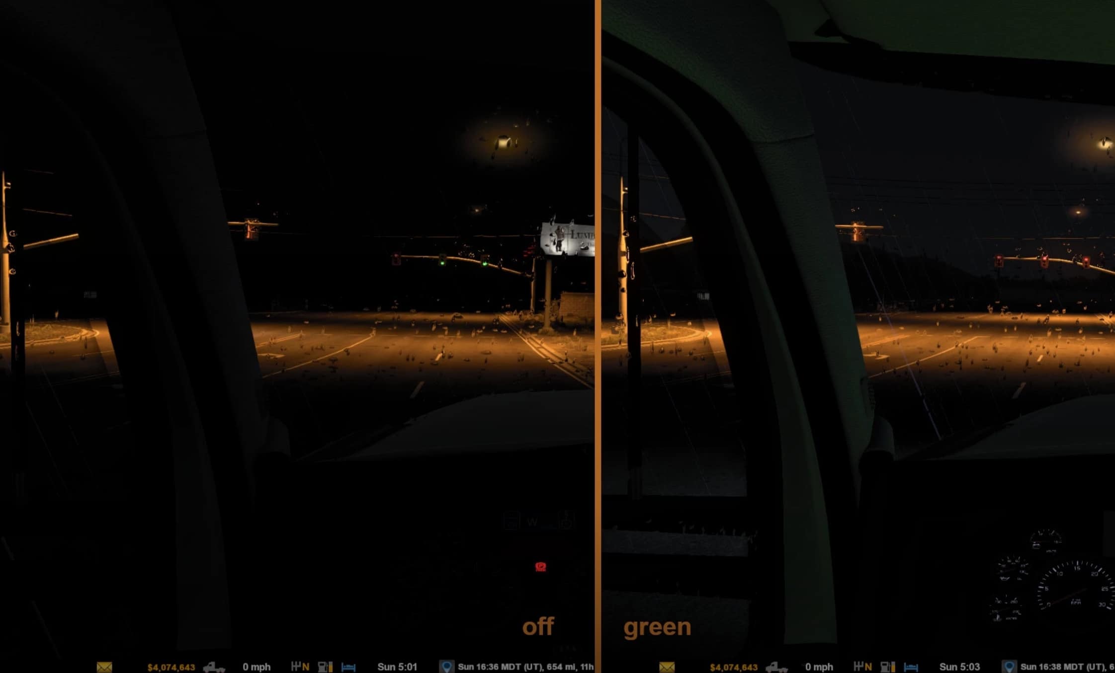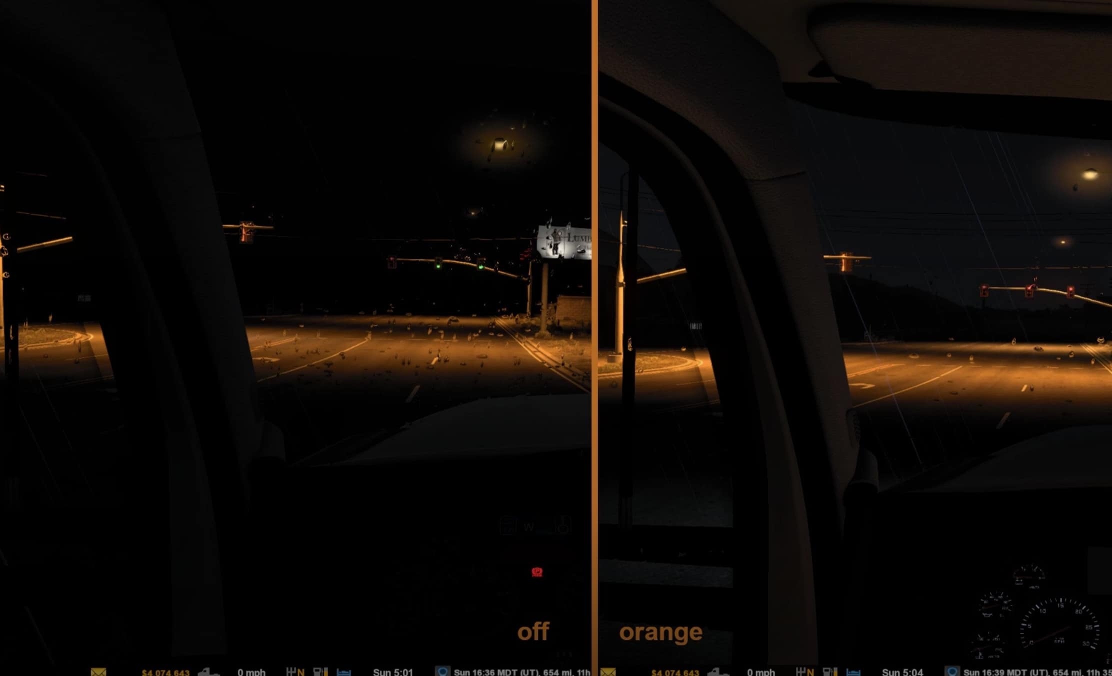 This mod provides interior cabin-light glow in choice of blue, green, orange, purple, red, and white for SCS trucks and mod trucks listed below.