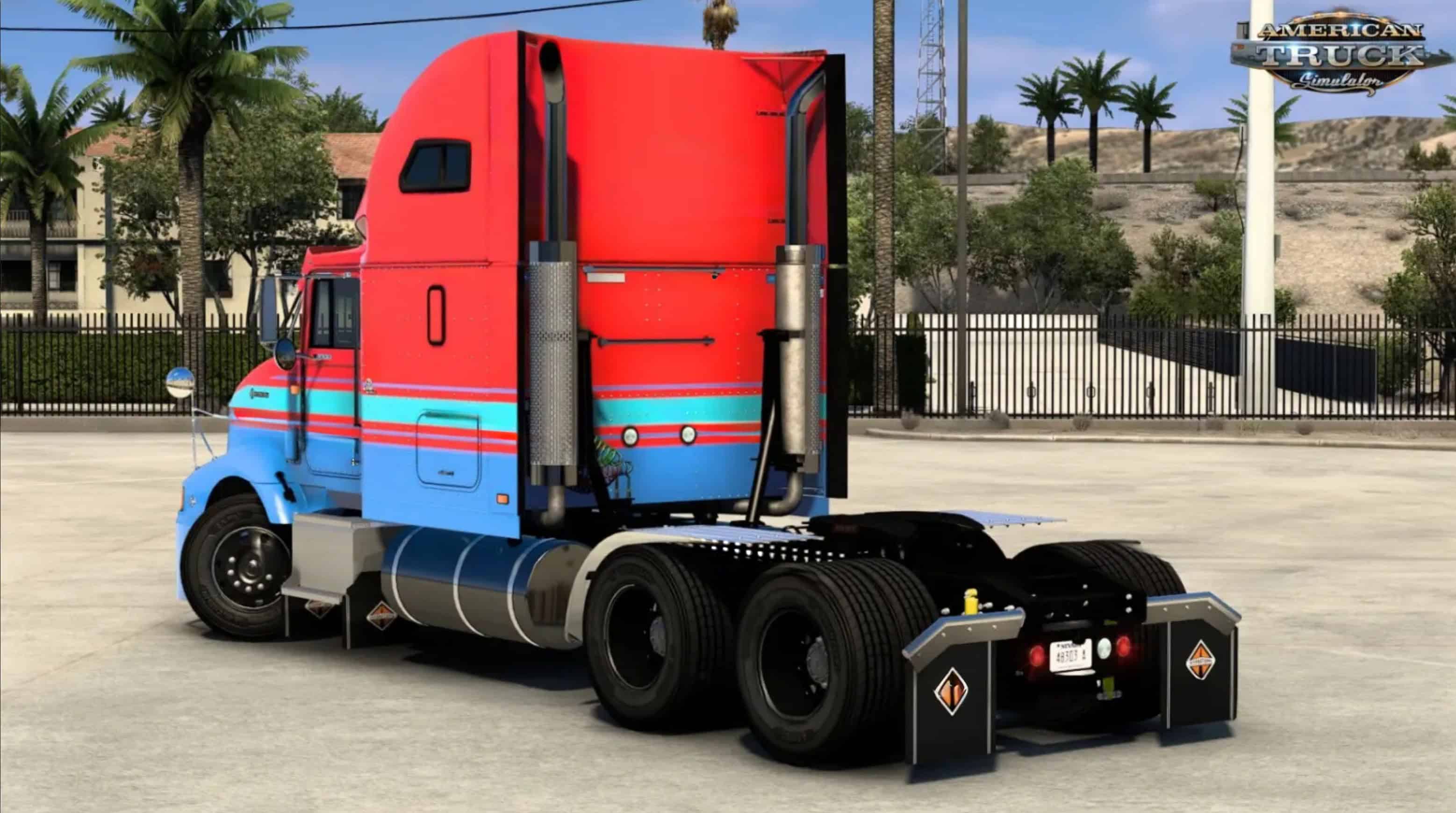 International 9200i for ATS – this mod brings the classic 1990s International 9200 truck in Early and Aero styles to ATS players as a standalone semi-truck, featuring redesigned aesthetics and accessories for authentic retro hauling across American highways. This standalone mod features redesigned aesthetics and accessories for authentic retro hauling across American highways. Several truck parts have been replaced with custom models, including the hood, cab front, visors, mirrors, and battery boxes. The interior remains largely based on the 9300, with improvised adjustments such as new door models and an upper dash to fit the updated cab shape.