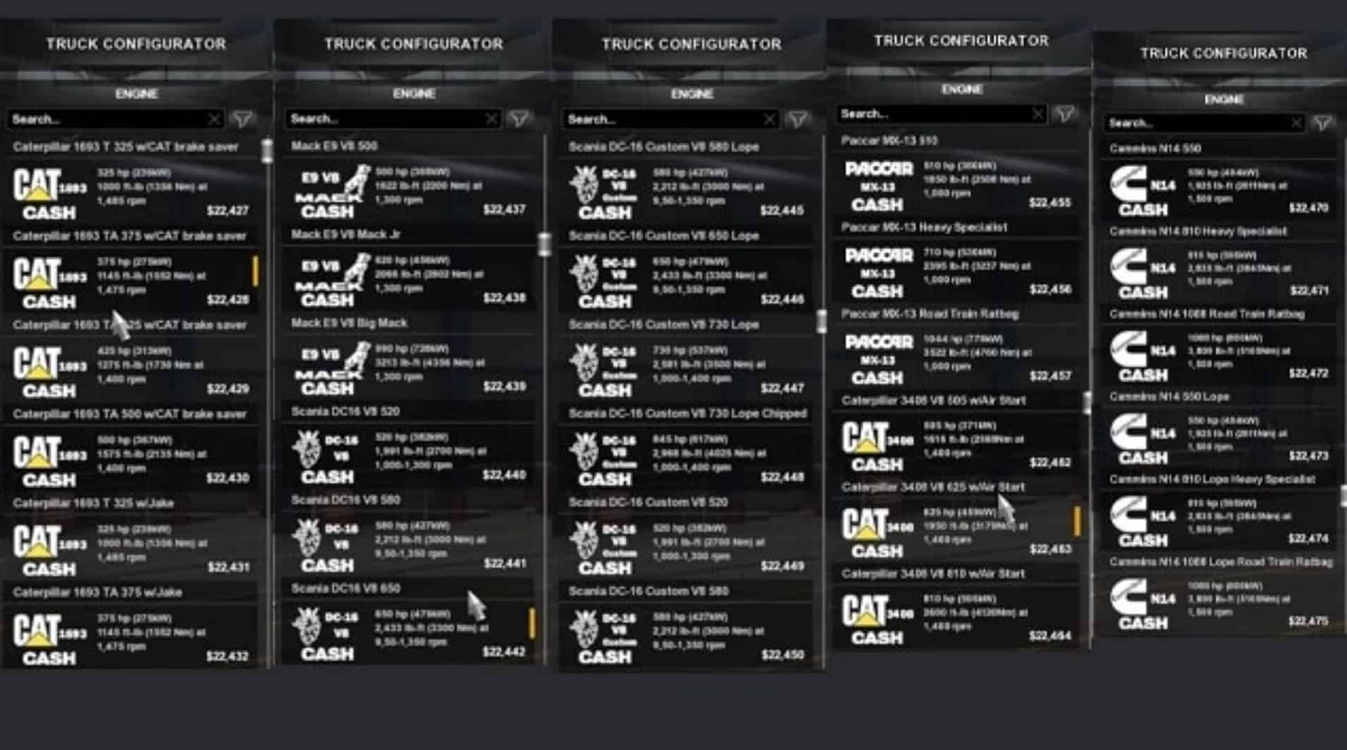 It contains 7 different engines with various HP and options