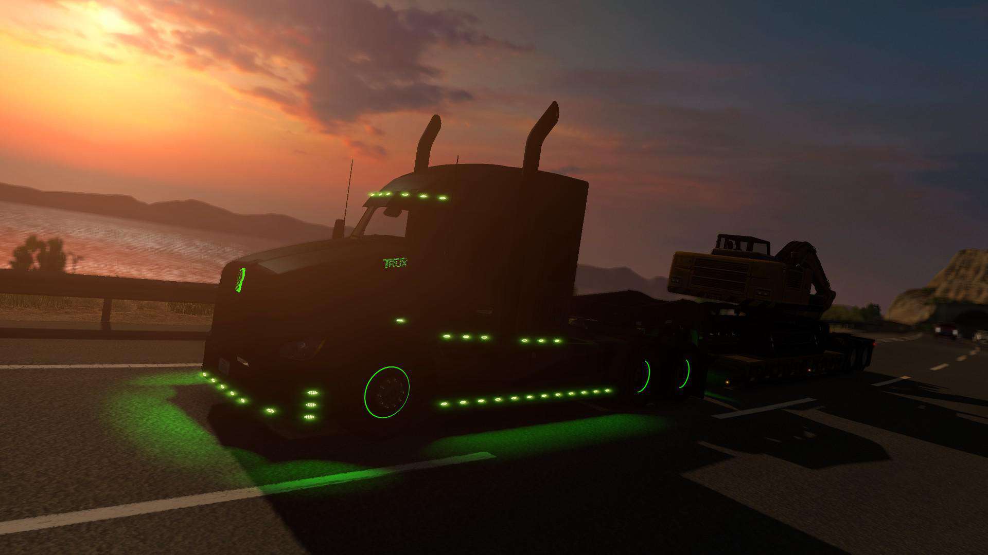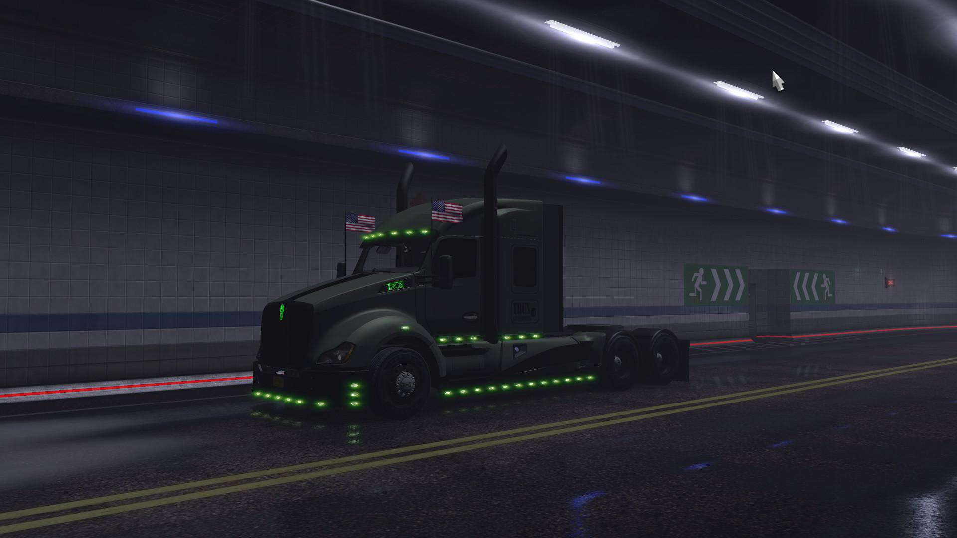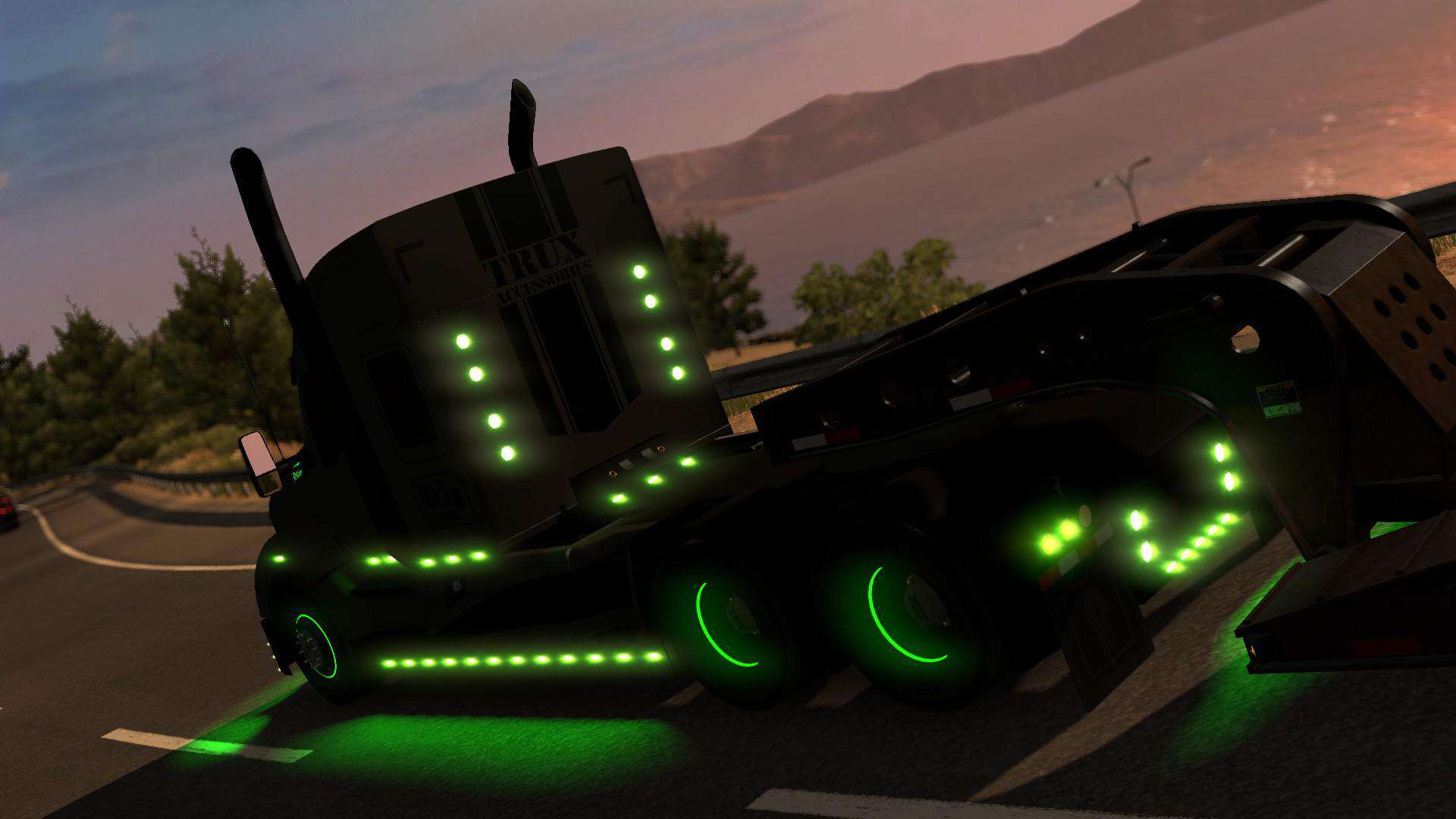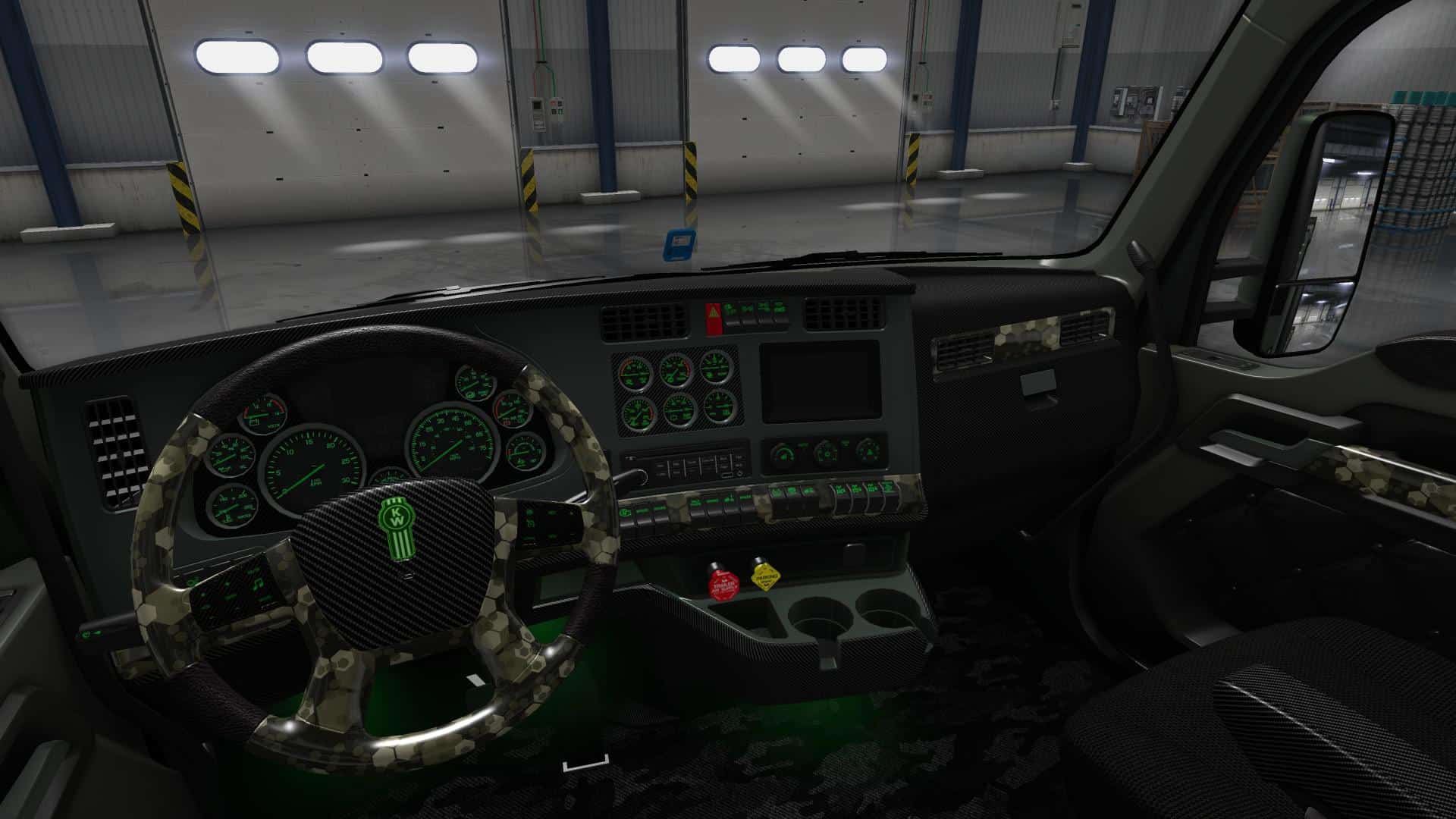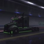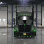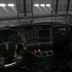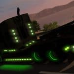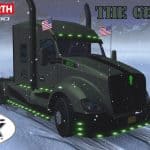 This truck mod is a recreation of Trux Accessories 2017 show truck. The original one is 2014 Kenworth T660 glider truck built as a tribute to the military and all that it stands for. Original drivetrain: Detroit 12.7 liter 550hp engine and 13 speed transmission. There aren’t many customization options as this truck is already customized. Skin is made by Sirblackyalot, sounds by Kriechbaum and everything else by Harven. The interior is my design as there are no reference images (besides T660 interior looks more like W900). There are 6 new fully functional gauges on the dashboard and background lights here and there. You can change the headlights color: green or stock and also few other things on the truck exterior. The truck is available for quick jobs (normal and oversize cargo) and you can admire it in the truck browser. Support for SISL accessories is available with a separate mod. It’s standalone truck so it has it’s own definition files, accessories, sounds and you can’t upgrade stock T680 to look like it. As a bonus the mod includes a grenade hanging toy.
