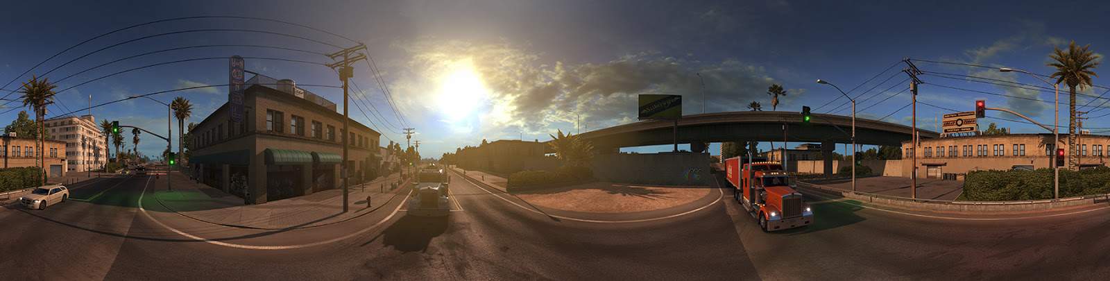 We are working hard on American Truck Simulator: California, fine-tuning it and polishing the content and features. You may have seen glimpses of the locations already before in our earlier blog posts, but we thought the couple of panoramas below are still so cool that you will appreciate seeing them…