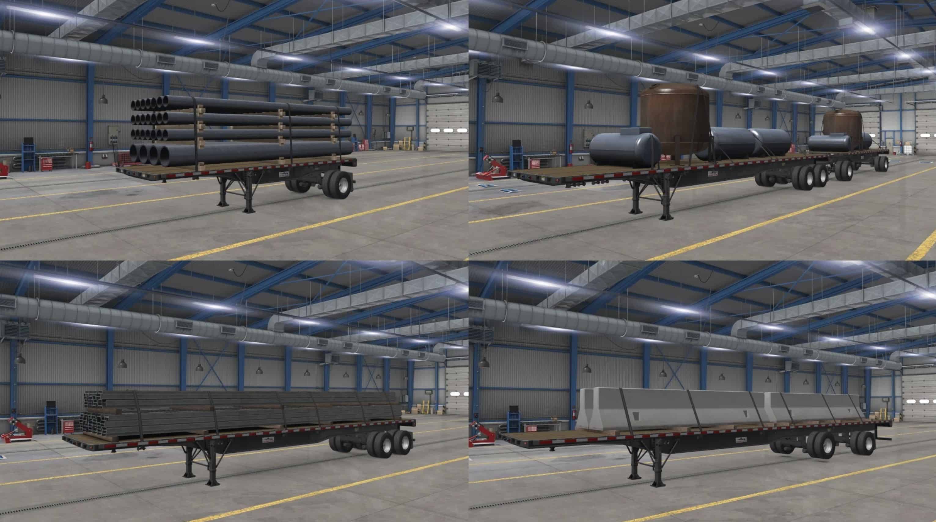 This mod aims to add the so-much-needed variety to the flatbed cargo, providing a bit better experience when hauling flatbed cargo. The mod adds new variants to the original cargo, as well as brand new cargo (some of them are also ported from ETS2).