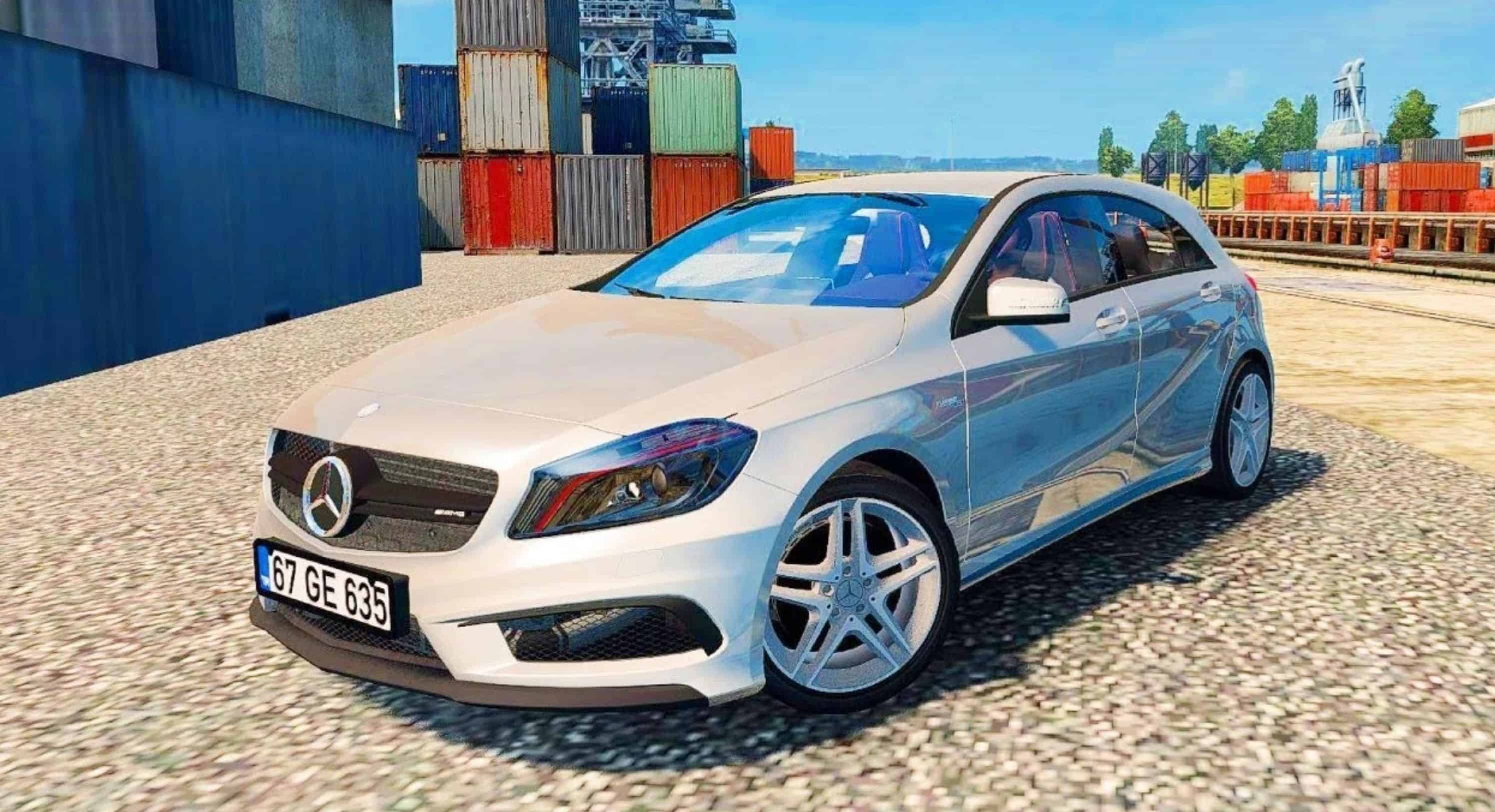 Mercedes Benz A45 – this mod add a beautiful passanger car mod from Mercedes hatchback with normal physics for ETS2 players. The mod of the car Mercedes-Benz A45 for Euro Truck Simulator 2 is made in the highest quality, and exactly repeats the geometry of the body of its original brother. Mod is available with two engines of 200 and 350 horsepower and a six-speed gearbox. The A45 AMG has a top speed of 155 mph and can accelerate from 0 to 60 mph in just 4.1 seconds. It features a seven-speed dual-clutch transmission and all-wheel drive. The A45 AMG also has upgraded suspension, brakes, and aerodynamics to handle its powerful engine. The interior is outfitted with premium materials and advanced technologies, including a large infotainment screen and a suite of driver assistance features.