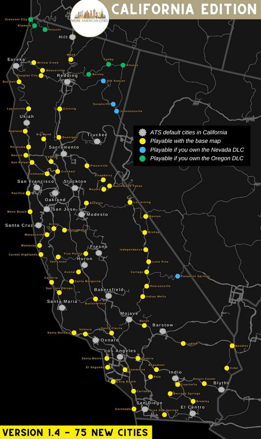 – The version 1.4 activates 11 additionnal cities across California. The edition is now fully developed.