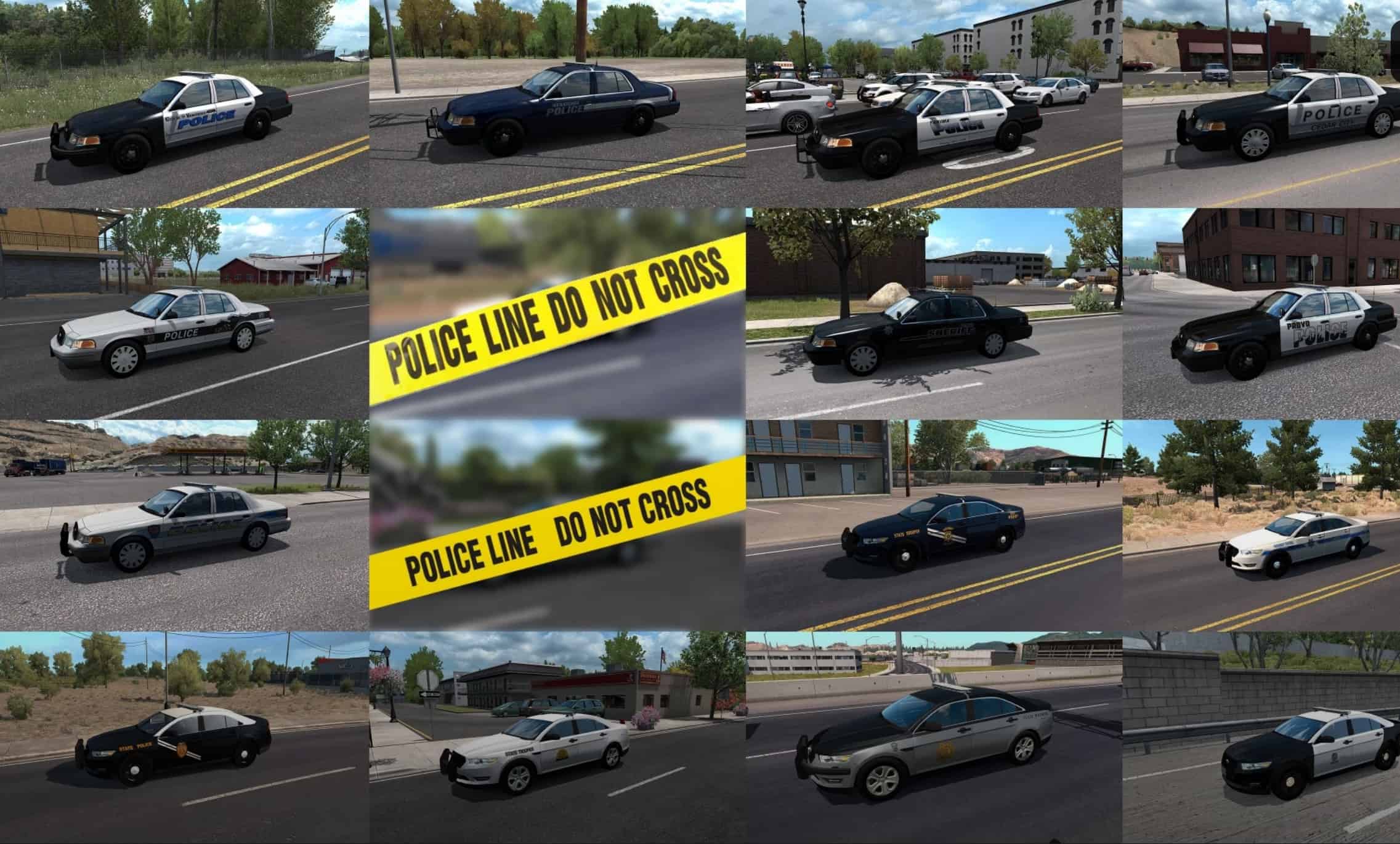 The mod removes the original police cars from the states made by SCS and replaces them with the cars in this mod, however the SCS Taurus with the open door can appear in the random event accident.