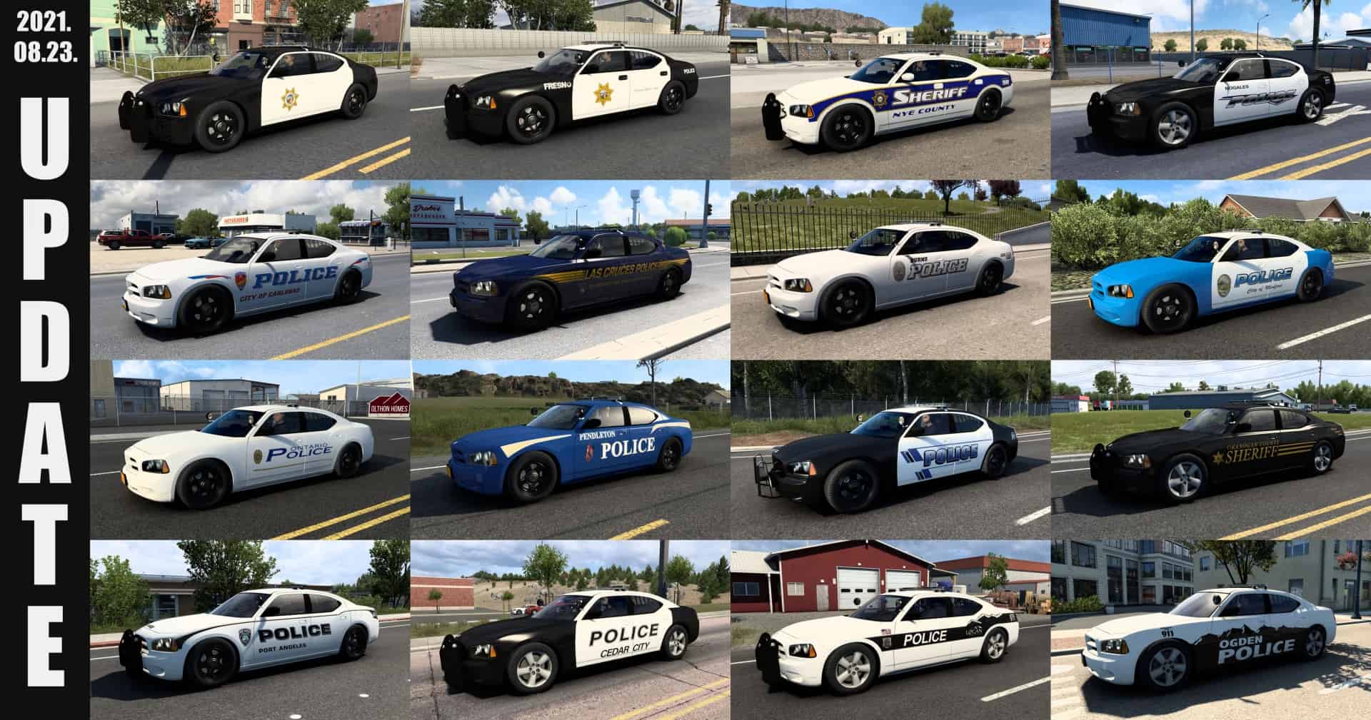 This mod adds police cars/liveries to almost every city in California, Nevada, Arizona, New Mexico, Oregon, Washington, Utah, Idaho, Colorado and Wyoming.