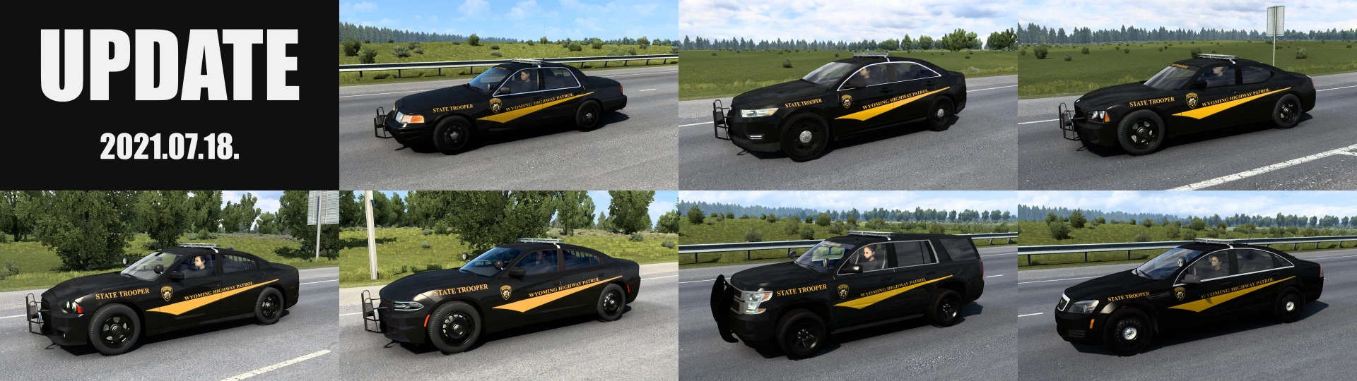 The mod removes the original police cars from the states made by SCS and replaces them with the cars in this mod, however the SCS Taurus with the open door can appear in the random event accident.