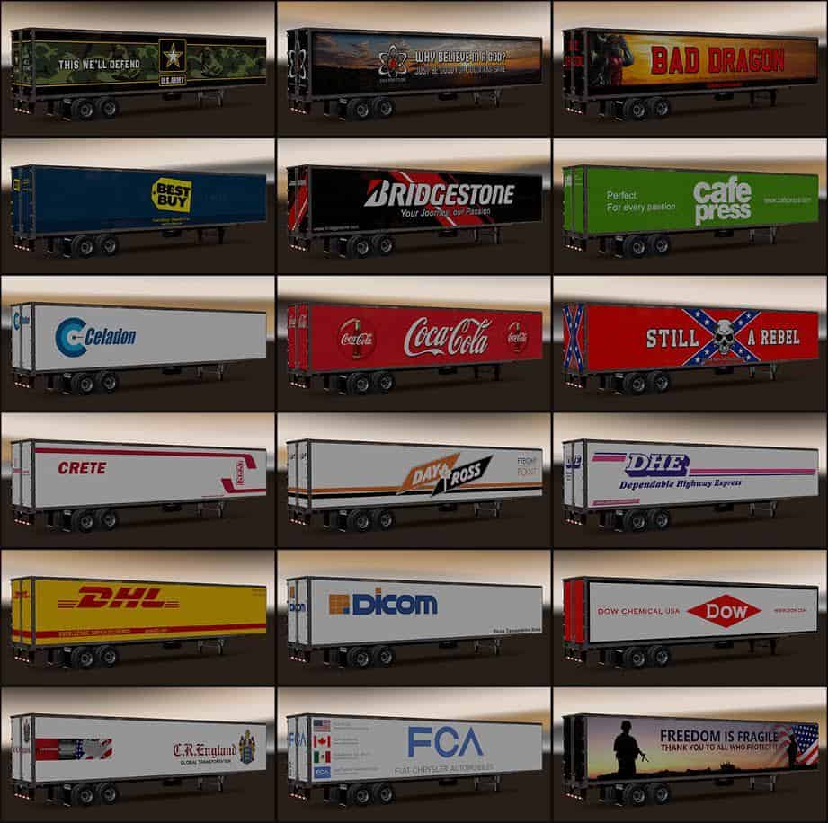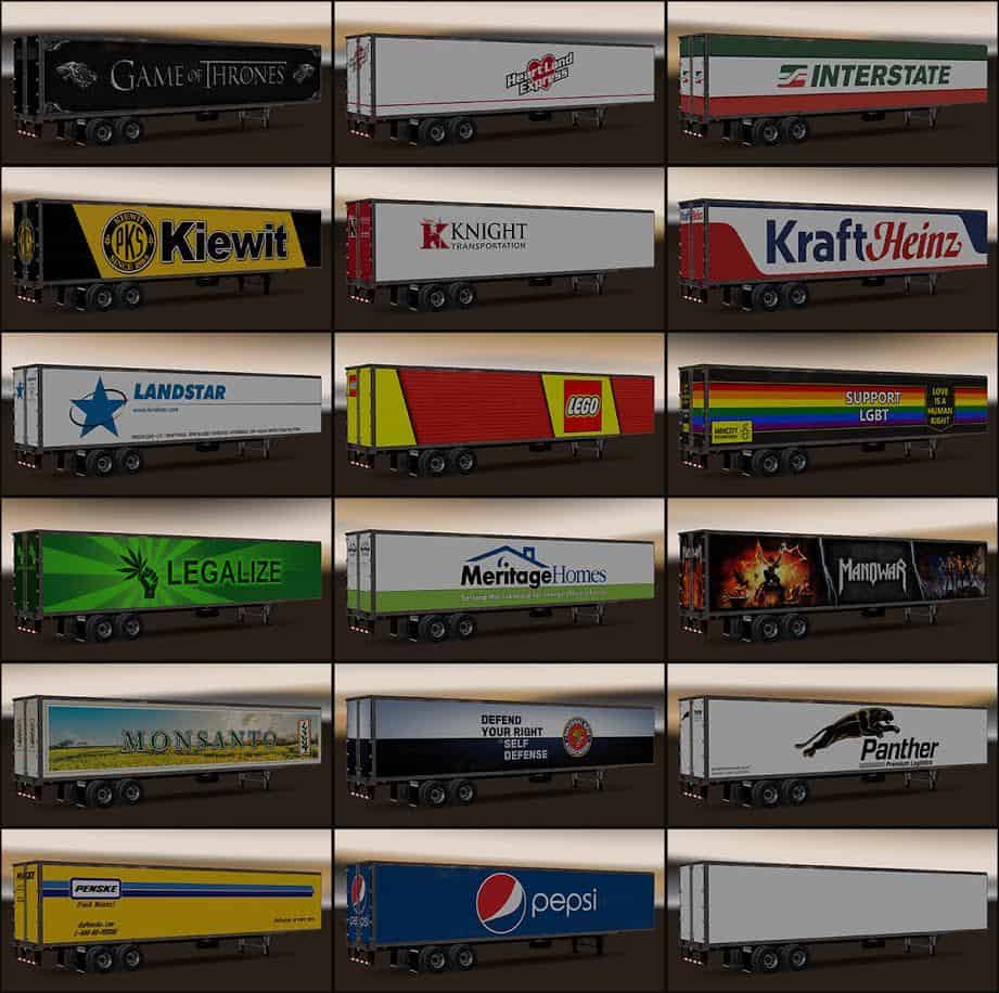 Other trailers may contain various default cargoes and can be found in various companies. All these trailers available in the “Trailer selection” menu.