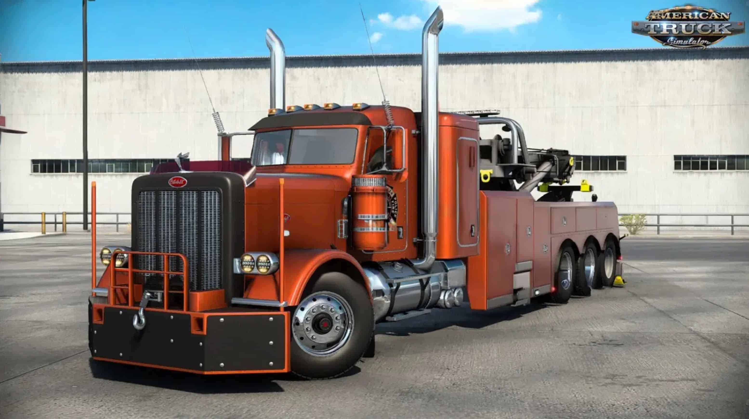 Peterbilt 388 Wrecker for ATS β this modification adds a high quality paid mod truck model for ATS players. The Wrecker has 2 cabs, various engines, own interior and a large set of accesories to customize the truck. Is a heavy-duty tow truck that is designed for heavy recovery jobs. It features a strong and durable structure that can pull and tow large vehicles with ease. The truck is powered by a powerful engine that delivers high torque and acceleration, making it suitable for towing heavy vehicles and equipment. The cab of the Peterbilt 388 Wrecker is designed for driver comfort and safety, with a spacious and ergonomic design that makes it easy for the driver to navigate and control the truck. The interior of the cab is fitted with modern technology, including a high-tech entertainment system, climate control, and advanced safety features that ensure the driver stays safe on the road.