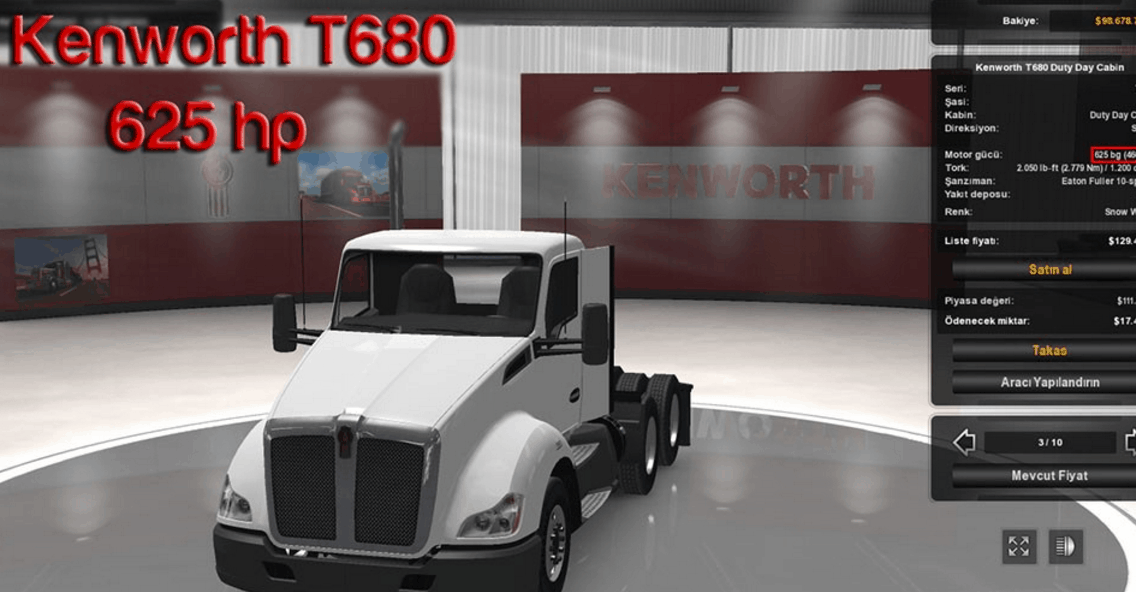 Çekici listesinde 625hp olan aracı satın alın. Aracı özelleştirirken motor kısmında değişiklik yapmayın, zaten aldığınızda 625hp olacak.