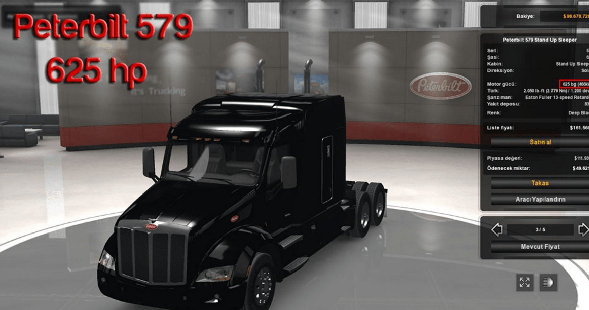 Buy the 625 hp truck in the truck list. Please do not select any motor type , it will be already 625 hp when you will buy th truck