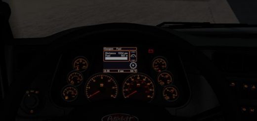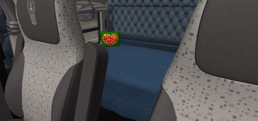 Changed all interior textures to improve similarity to real life truck (used high-res textures) – plastic, wood, fabric, leather parts, floor mat, interior lamps, Peterbilt logo on wheel and radio;