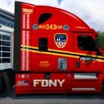 If you enjoy experiencing real American Truck driver life, but at the same time feel a bit bored of the common road, cargos, and trucks, then American Truck Simulator Mods are for you! Step into an American Truck Simulator Driver's shoes and prove that you can deliver the cargo under any circumstance. It is the easiest way to get the best of the game, your opponents will be surprised! Then all you need to do is simply click on American Truck Simulator Prime Inc. FDNY Squad 343 skin v1.0 Mod free download button and implement it to your game.