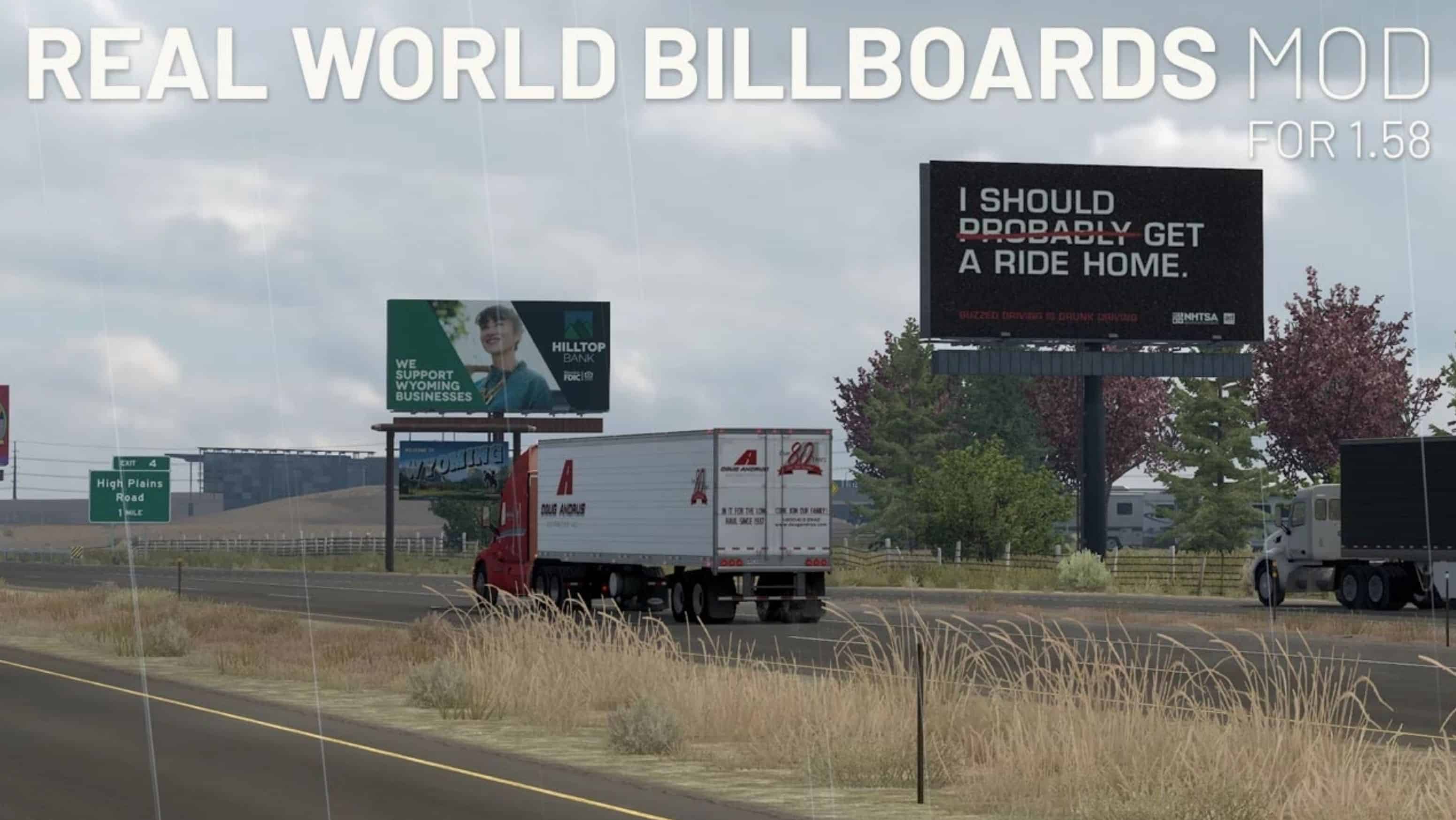 If you enjoy experiencing real American Truck driver life, but at the same time feel a bit bored of the common road, cargos, and trucks, then American Truck Simulator Mods are for you! Step into an American Truck Simulator Driver's shoes and prove that you can deliver the cargo under any circumstance. It is the easiest way to get the best of the game, your opponents will be surprised! Then all you need to do is simply click on American Truck Simulator Real World Billboards v2026.03.29 Mod free download button and implement it to your game.