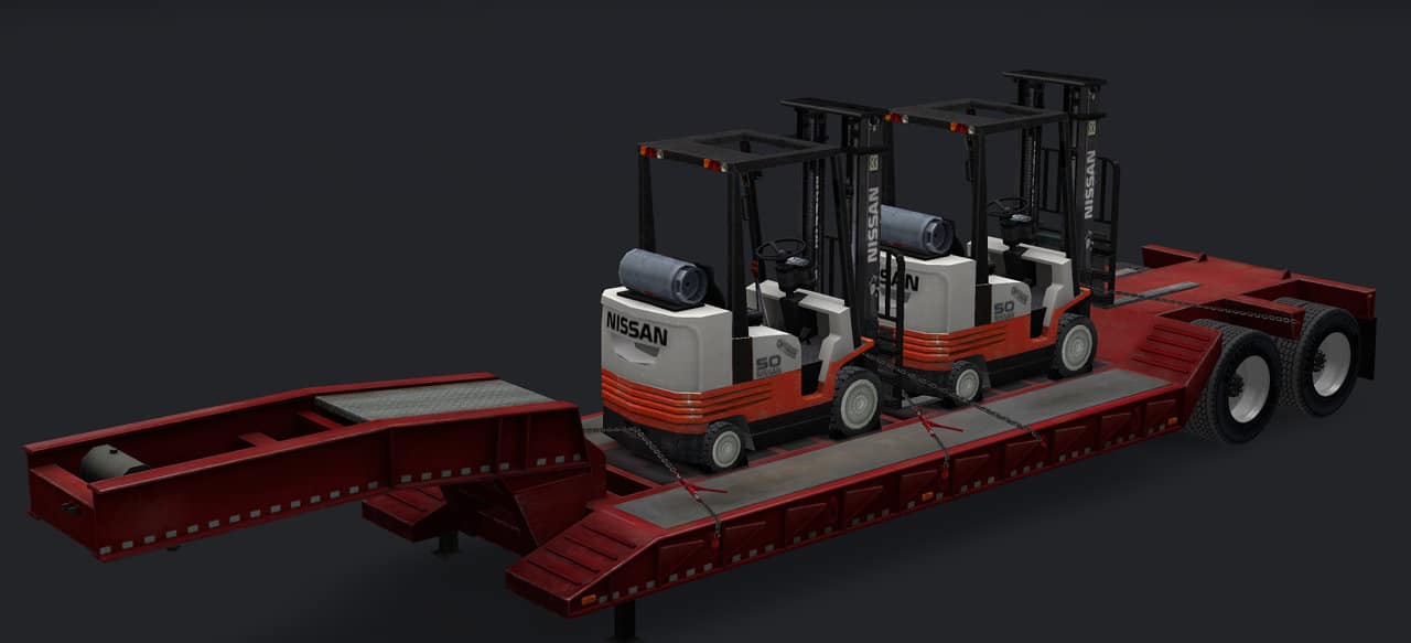 Please ad oversized or wide load sign to the back with flags on the trailer and sides of load, also two beacons on the end of the trailer for night or stormy driving. If possible ad a third axle with four wheels on all three because that is what it is like mostly with these trailers in real life.