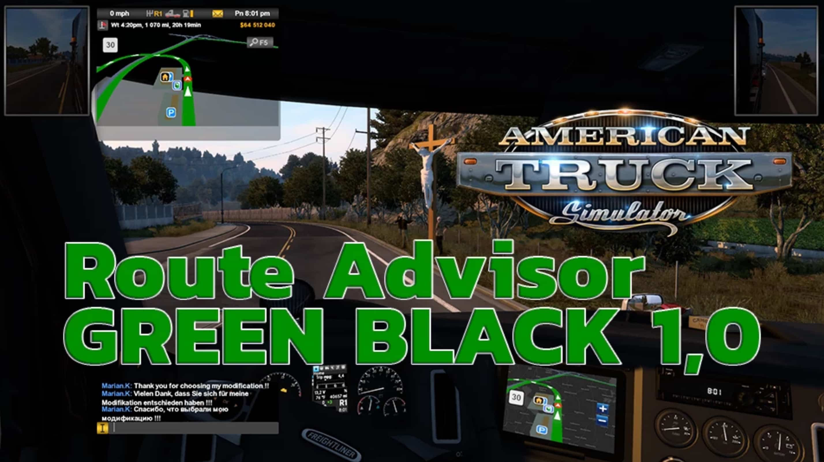 If you enjoy experiencing real American Truck driver life, but at the same time feel a bit bored of the common road, cargos, and trucks, then American Truck Simulator Mods are for you! Step into an American Truck Simulator Driver's shoes and prove that you can deliver the cargo under any circumstance. It is the easiest way to get the best of the game, your opponents will be surprised! Then all you need to do is simply click on American Truck Simulator Route Advisor GREEN BLACK v1.0 Mod free download button and implement it to your game.