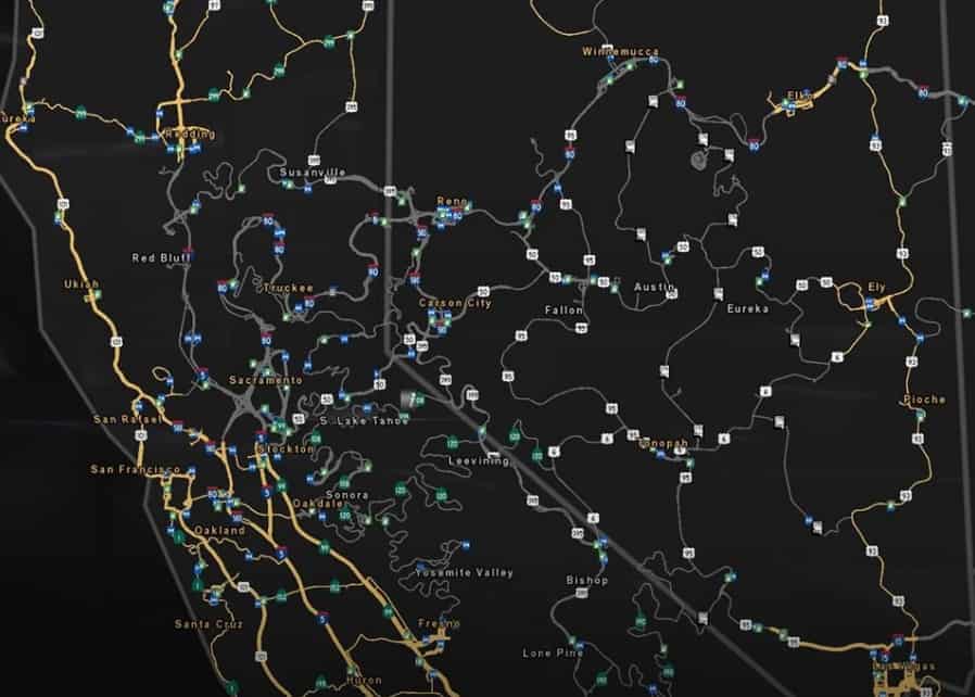 This mod remodels extensive areas in northern California and the vast majority of Nevada in the base map of ATS.