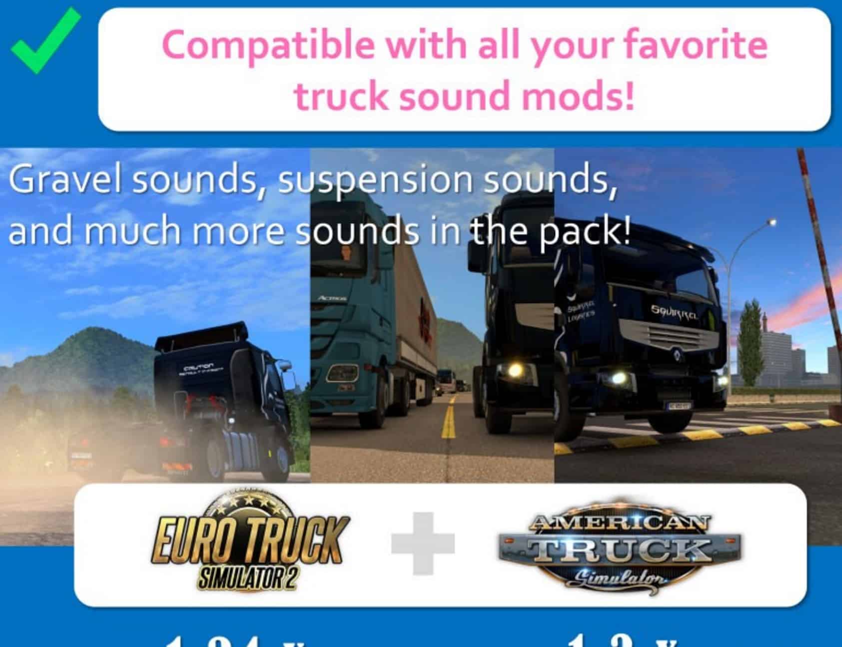 Does not replace individual truck sounds, so can be used with an unlimited amount of truck sound mods of your choice.