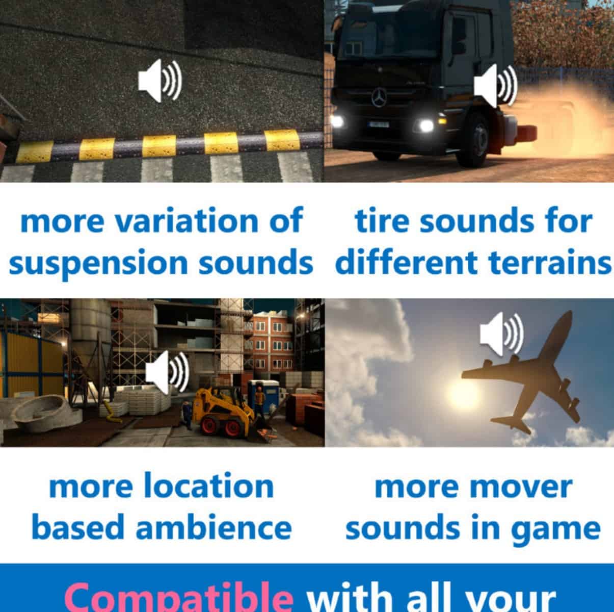 * Prefab (i.e. company and delivery point) soundscape enhanced for American Truck Simulator (includes both daytime and nighttime ambience).