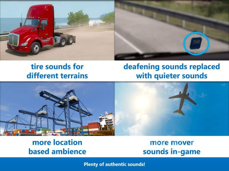 Changes the sounds of vehicles, all kinds of animated objects, the sounds of levers, retarders, etc.