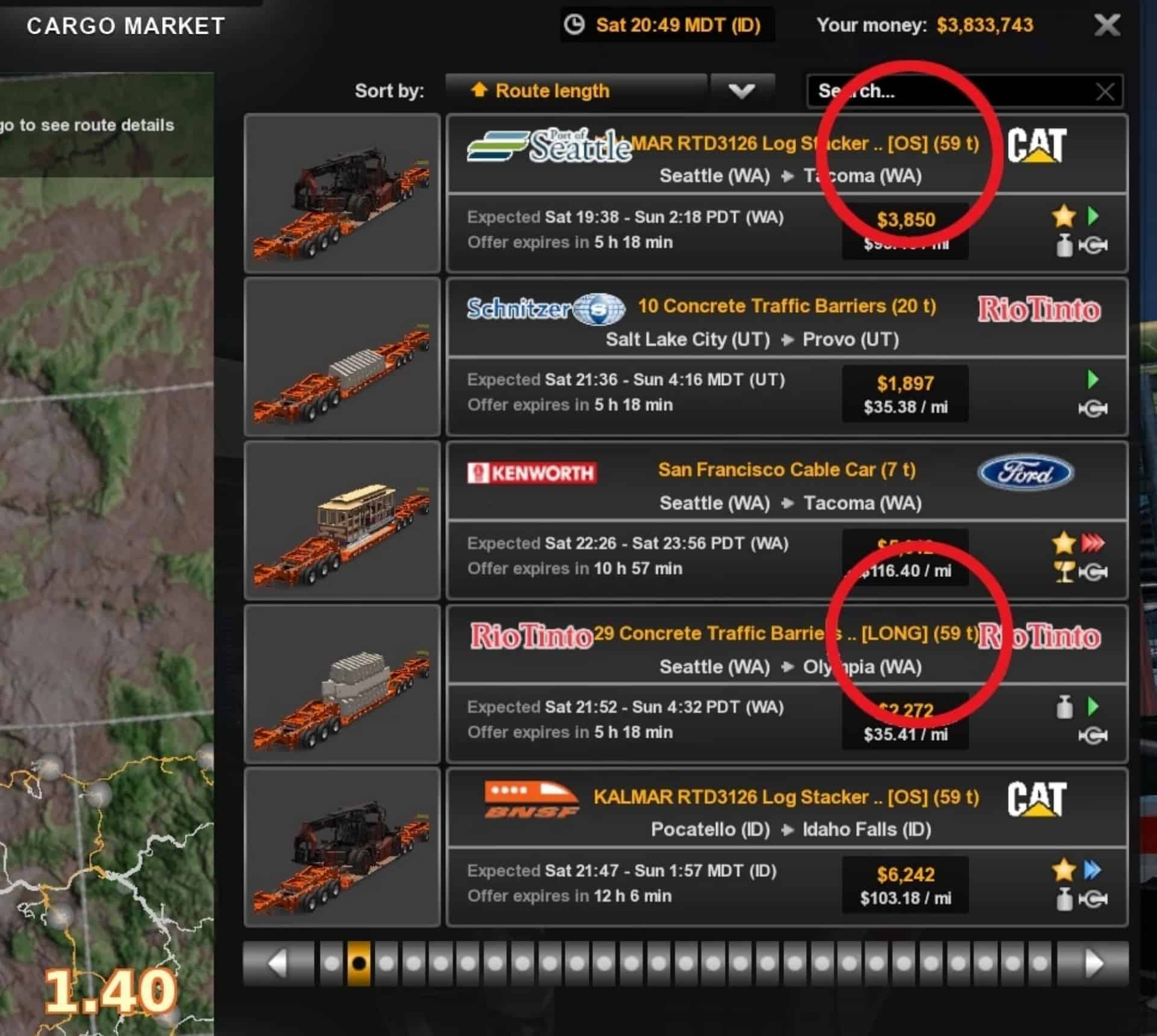 2) Before triggering the job-choice icon at the cargo’s origin, adjust to Coupled. (After you trigger that icon, you can no longer adjust a trailer’s configuration. Cargo will load, but it will sure look funny!)