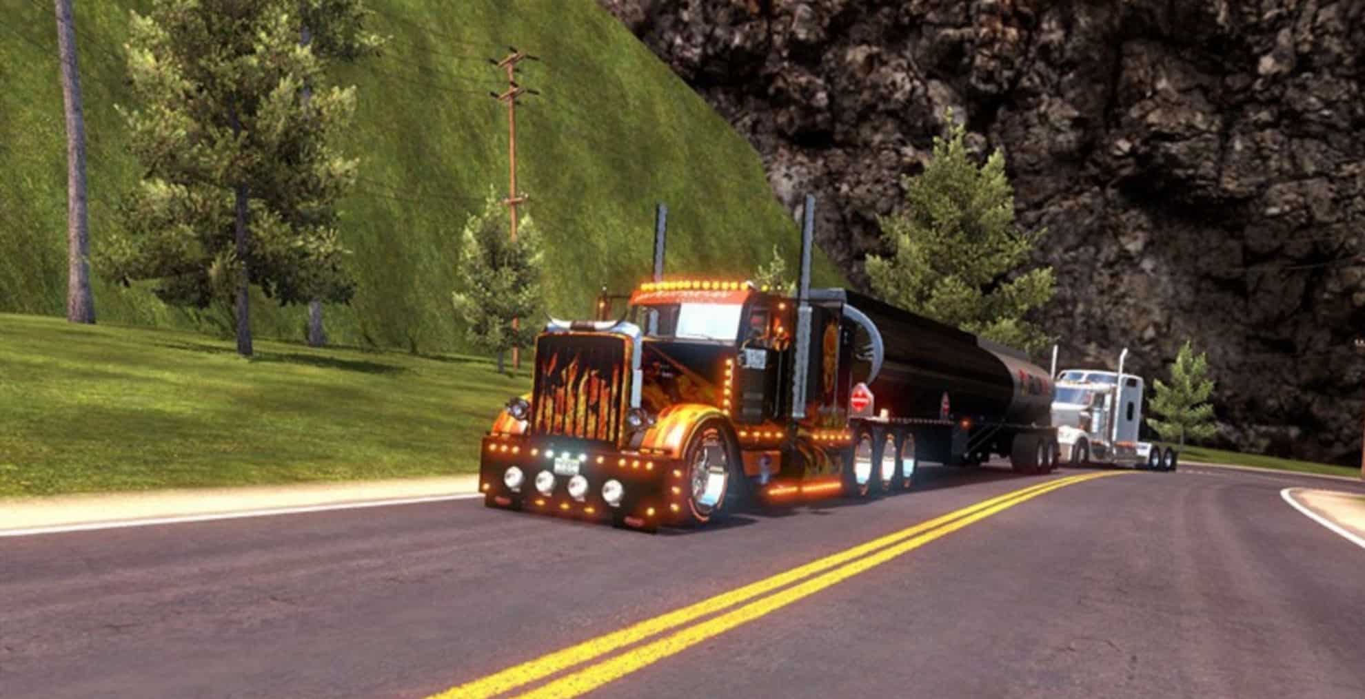 If you enjoy experiencing real American Truck driver life, but at the same time feel a bit bored of the common road, cargos, and trucks, then American Truck Simulator Mods are for you! Step into an American Truck Simulator Driver's shoes and prove that you can deliver the cargo under any circumstance. It is the easiest way to get the best of the game, your opponents will be surprised! Then all you need to do is simply click on American Truck Simulator T D S Peterbilt 389 Underworld Skin Mod Mod free download button and implement it to your game.
