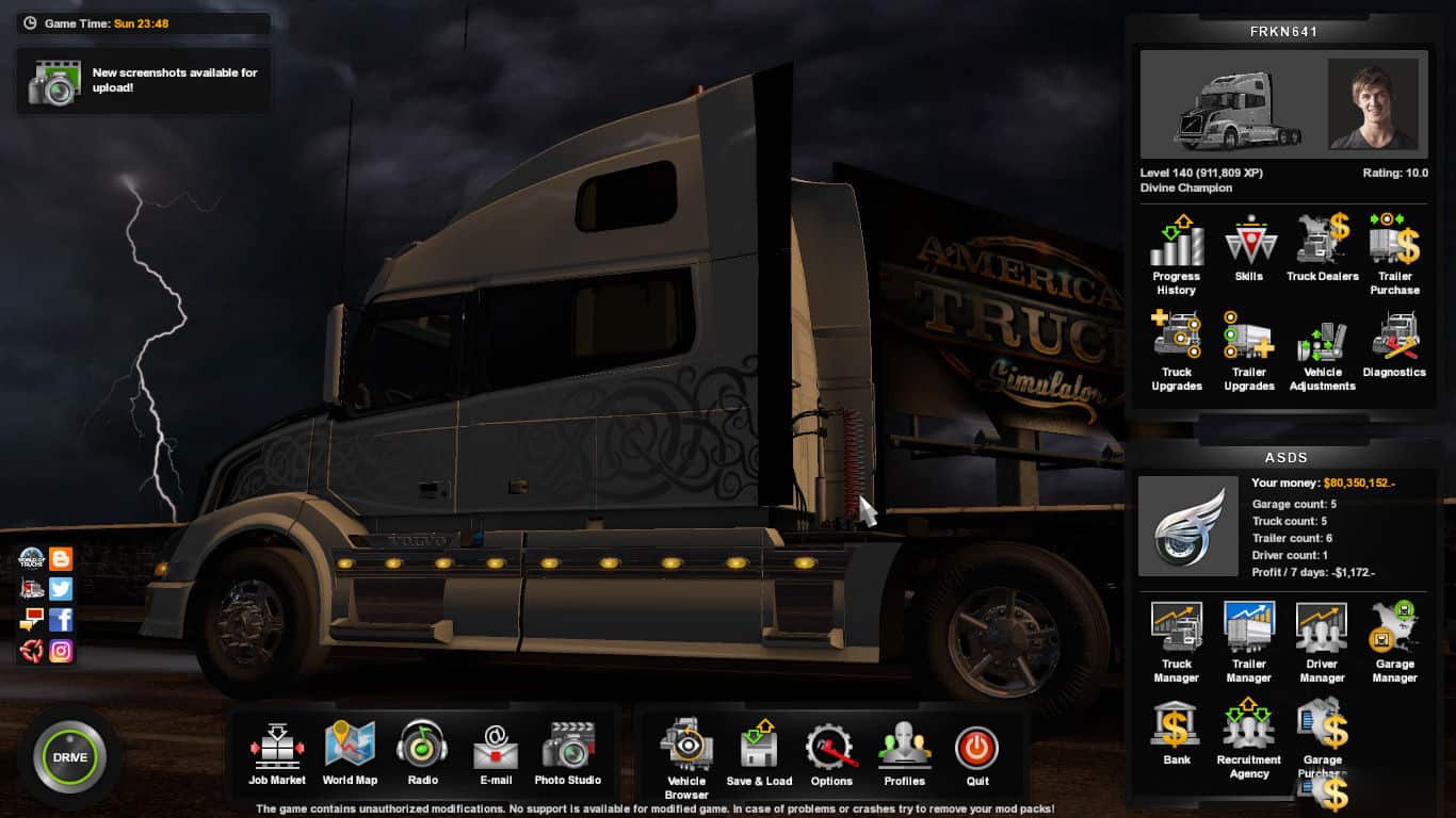 If you enjoy experiencing real American Truck driver life, but at the same time feel a bit bored of the common road, cargos, and trucks, then American Truck Simulator Mods are for you! Step into an American Truck Simulator Driver's shoes and prove that you can deliver the cargo under any circumstance. It is the easiest way to get the best of the game, your opponents will be surprised! Then all you need to do is simply click on American Truck Simulator Tempest Night Background Mod v1.3 Mod free download button and implement it to your game.
