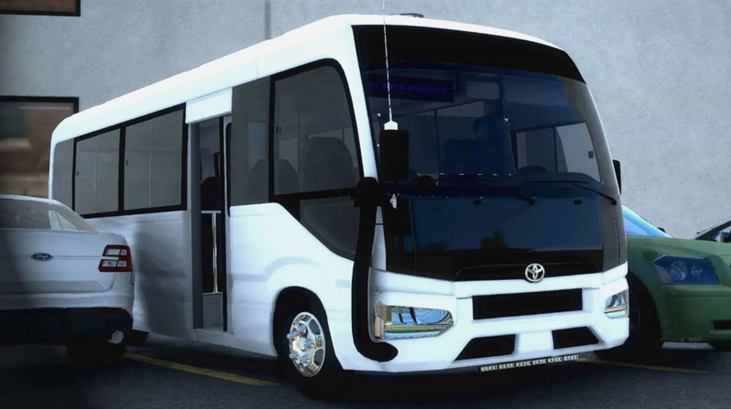 Toyota Coaster G4 2022 – this modification adds a small passenger bus model G4 (Fourth generation) for ATS / ETS2 players. Despite the external similarity, the new Coaster has nothing in common with the previous generation bus. At the heart of its body is a “ring” frame, covering the roof, sidewalls and frame sections. The body has become 4 cm wider, which made it possible to make comfortable window sills for passengers.